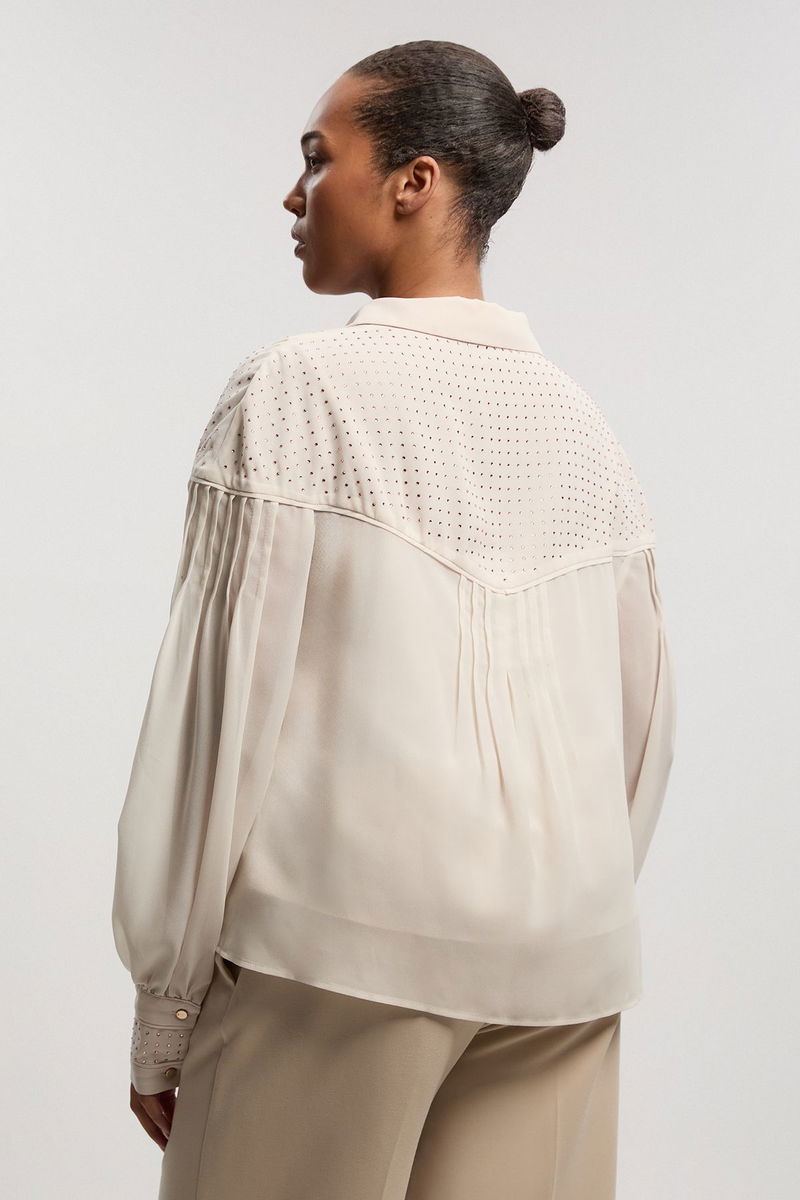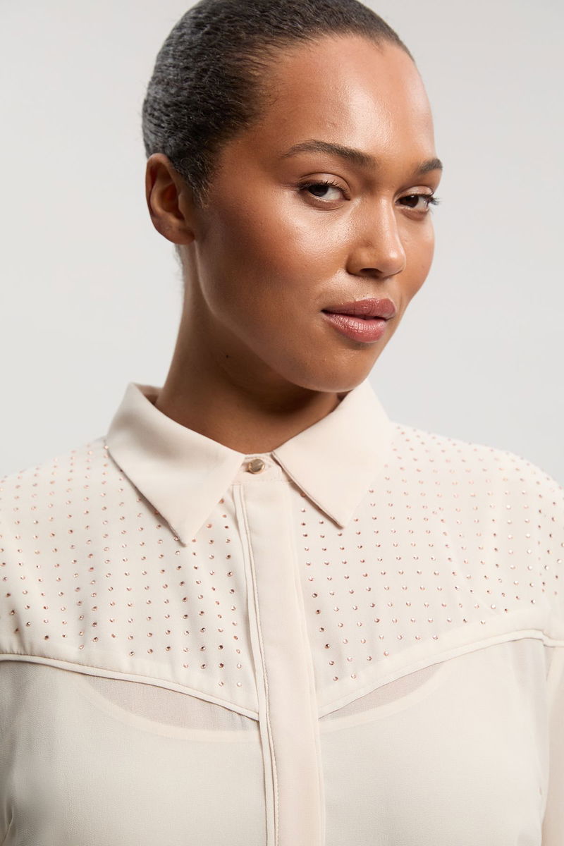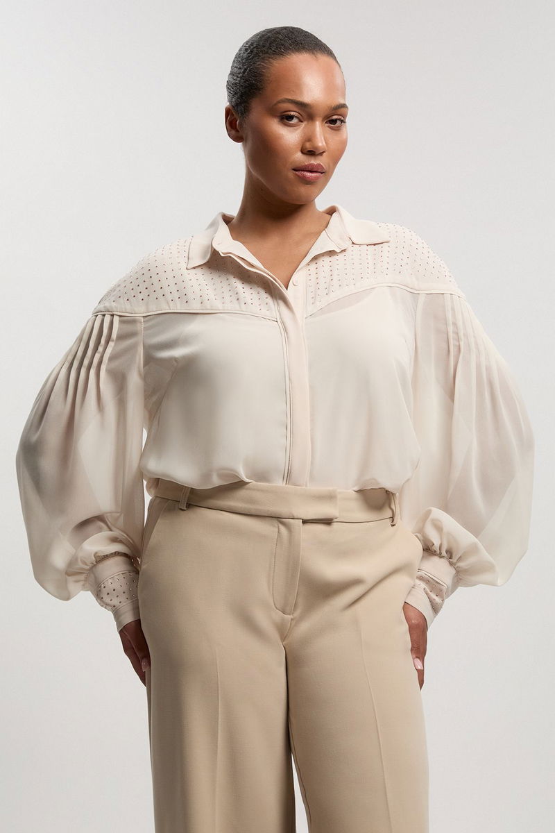 Plus Size Hotfix Studded Long Sleeve Woven Shirt