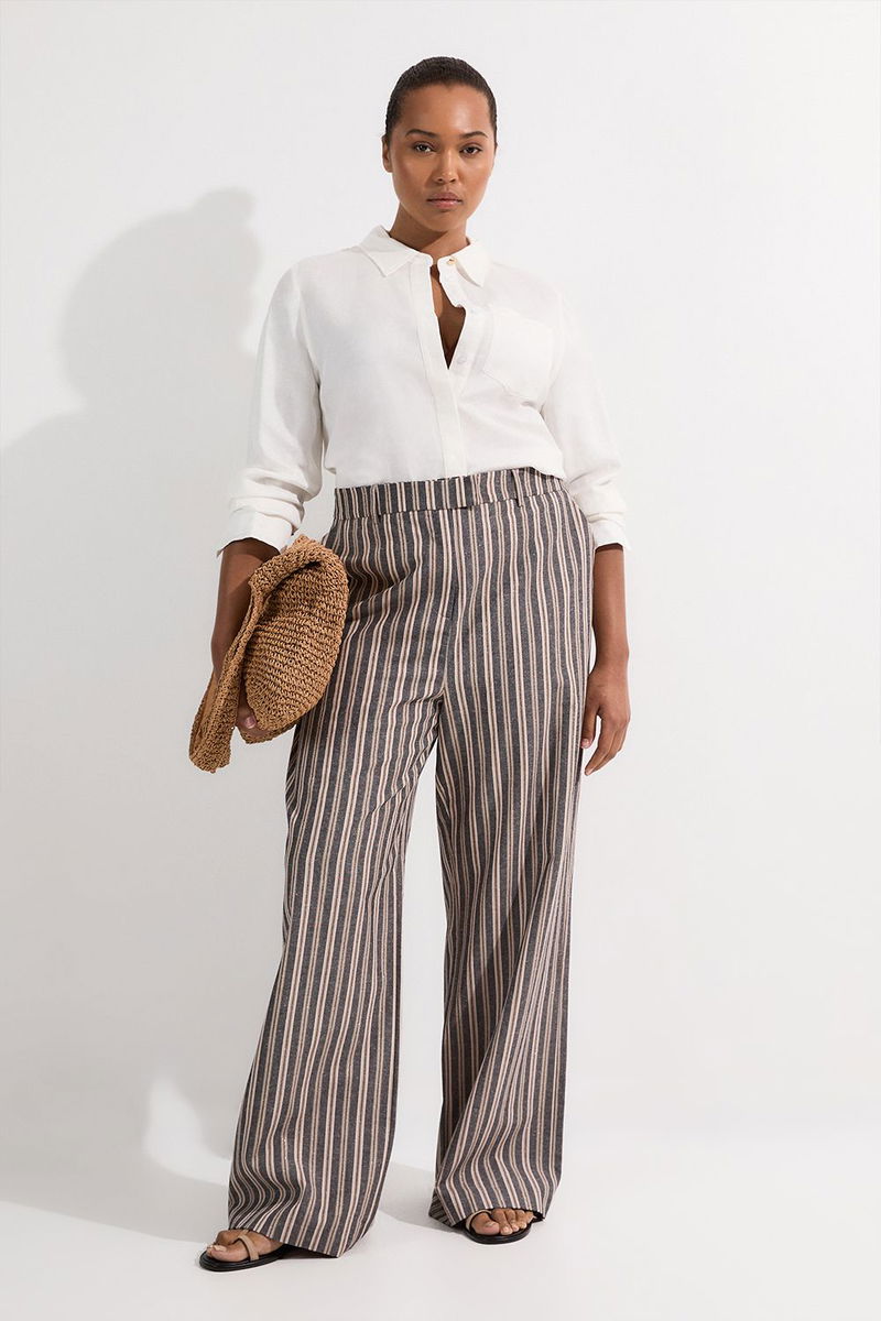 Plus Size Linen Sparkle Stripe Tailored Wide Leg Tailored Trouser