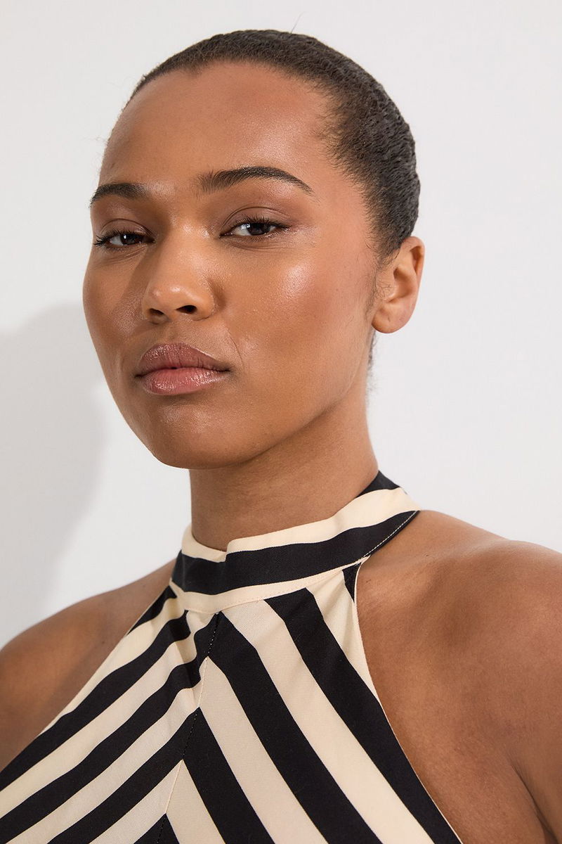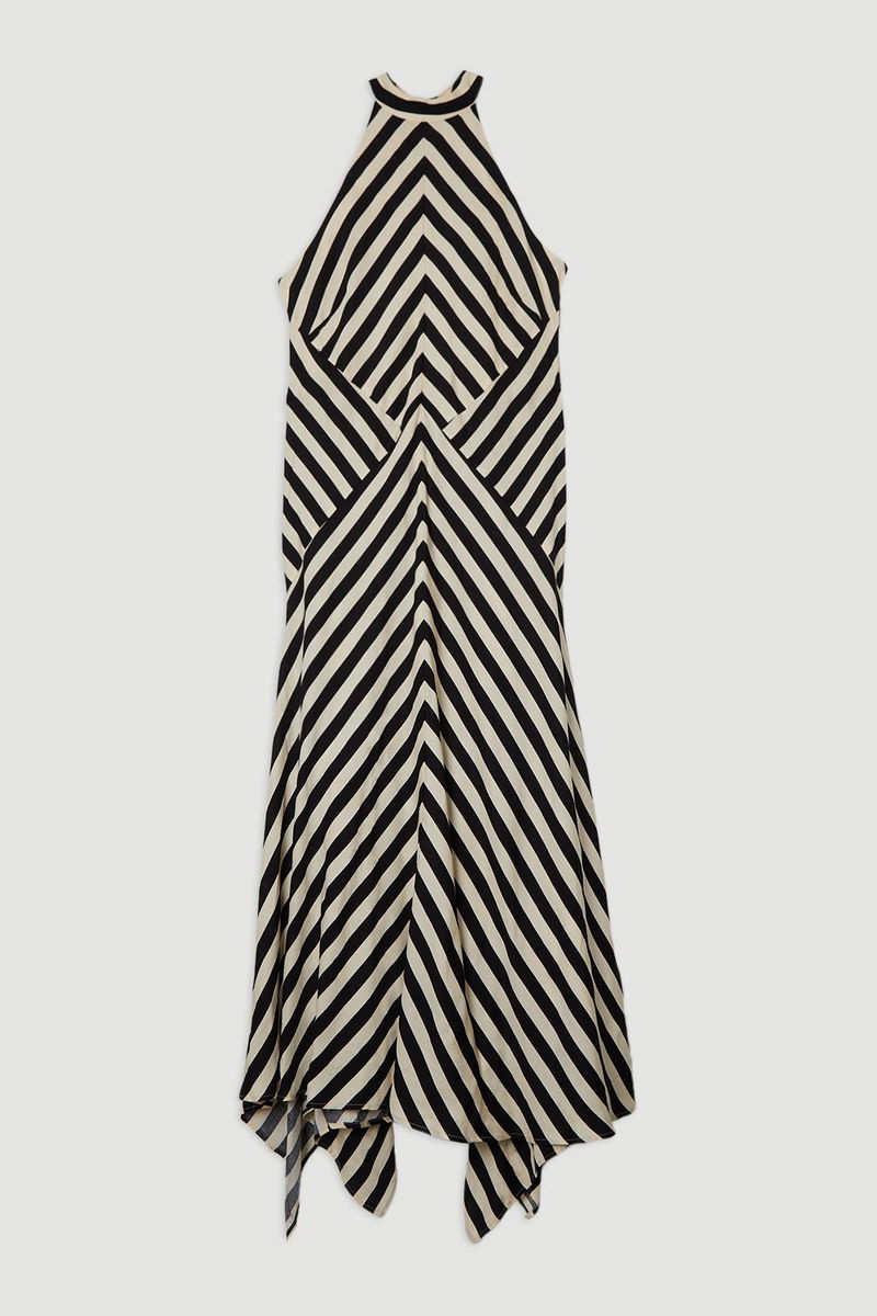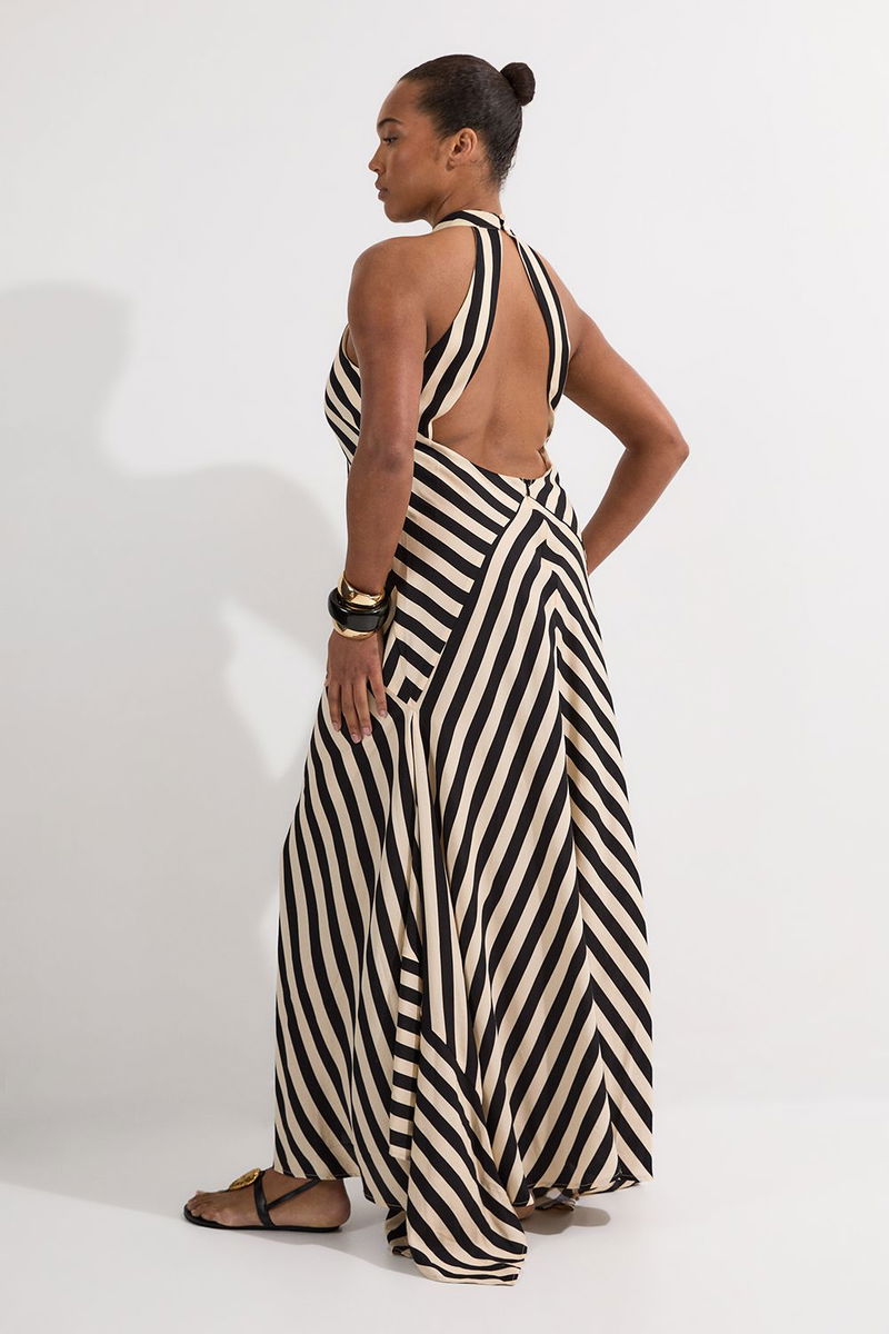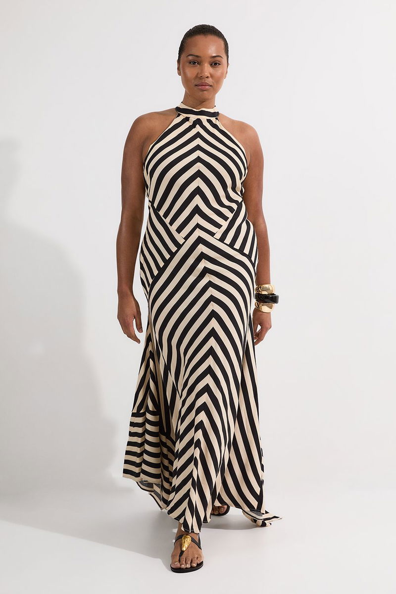 Plus Size Mono Fluid Stripe Cotton Mix Woven Maxi Halter Dress