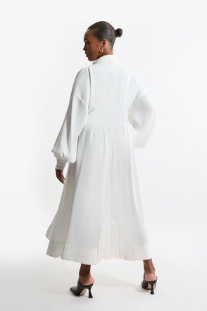 This Karen Millen plus size midi dress radiates effortless elegance for various daytime occasions. The tailored full skirt creates a beautiful silhouette, while the collared neckline adds a touch of sophistication. Style this versatile piece with flat sandals for a relaxed family gathering or pair it with wedges for a smart-casual lunch date. The sleeveless design makes it ideal for warm weather, and the belted waist allows you to customise the fit to your liking. Layer with a lightweight cardigan for cooler evenings or dress it up with statement earrings for a more polished look. This dress is a wardrobe essential that can be styled in multiple ways to suit different casual events throughout the season.