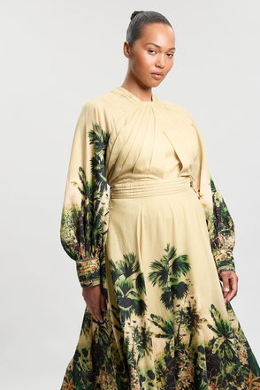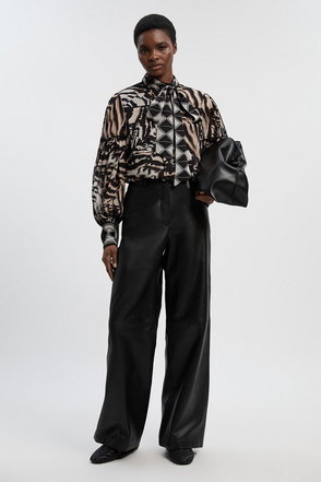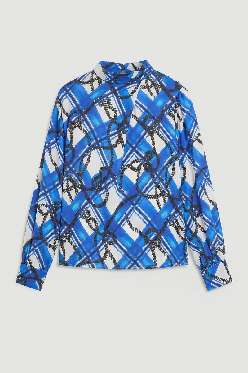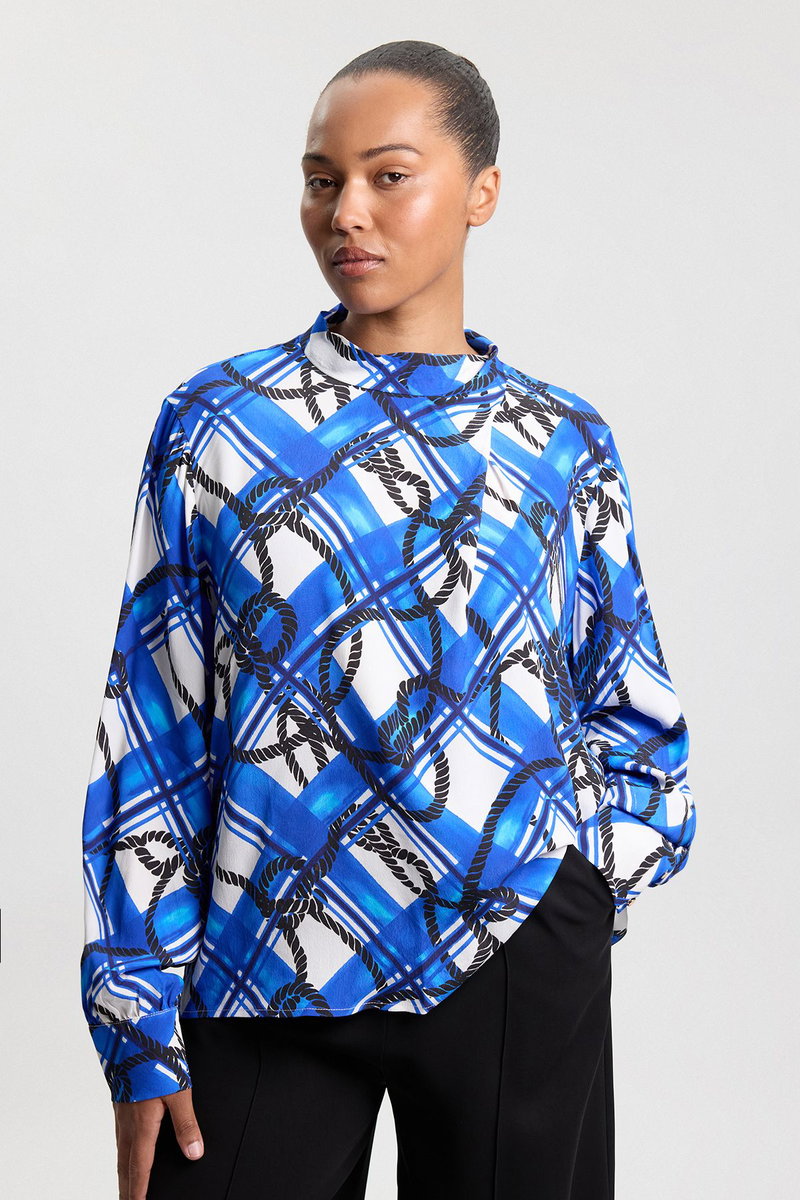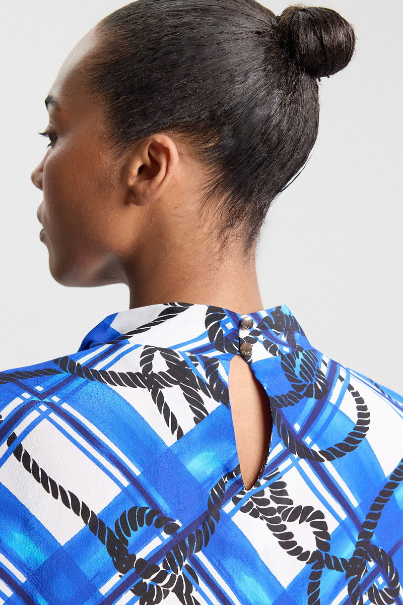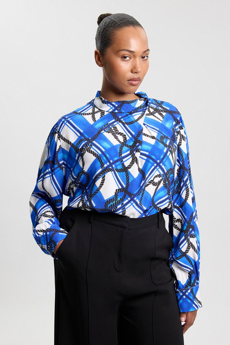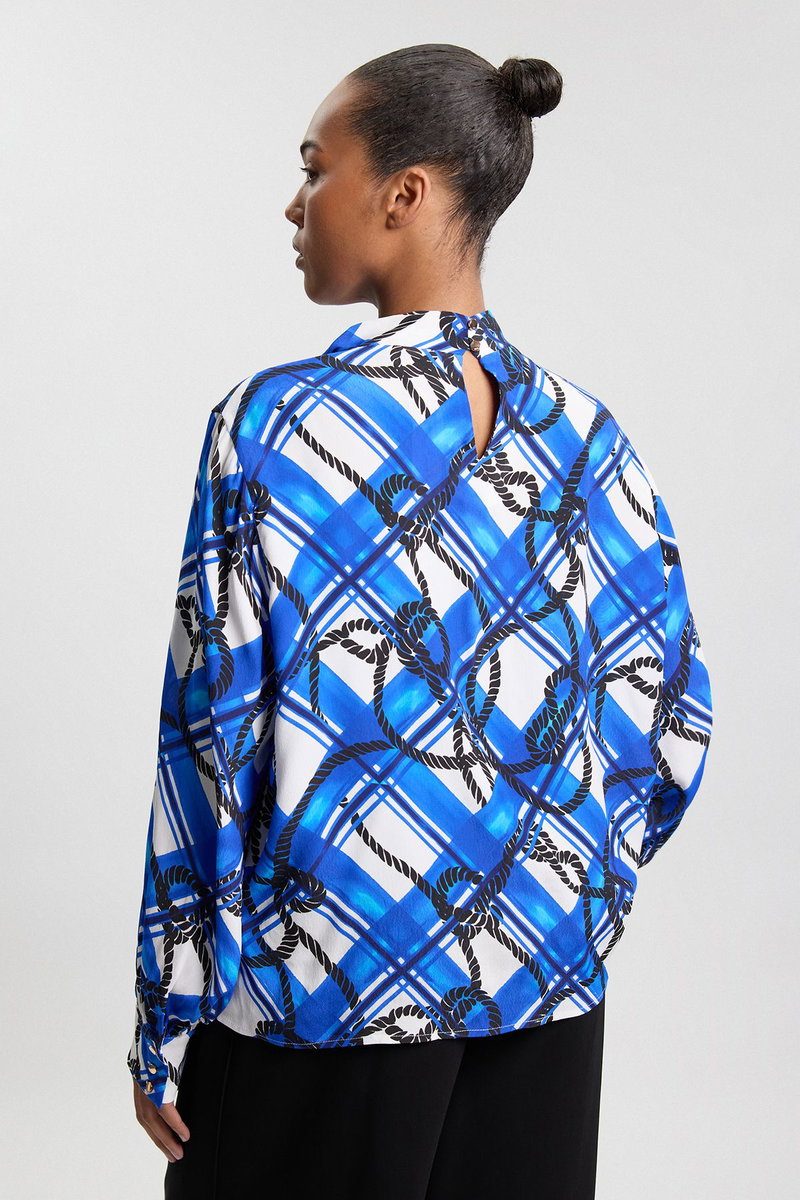 Plus Size Rope Print Viscose Crepe Balloon Sleeve Blouse
