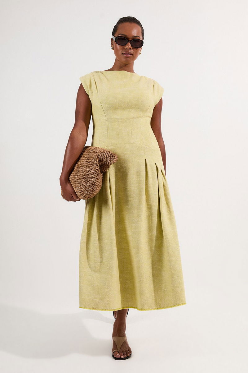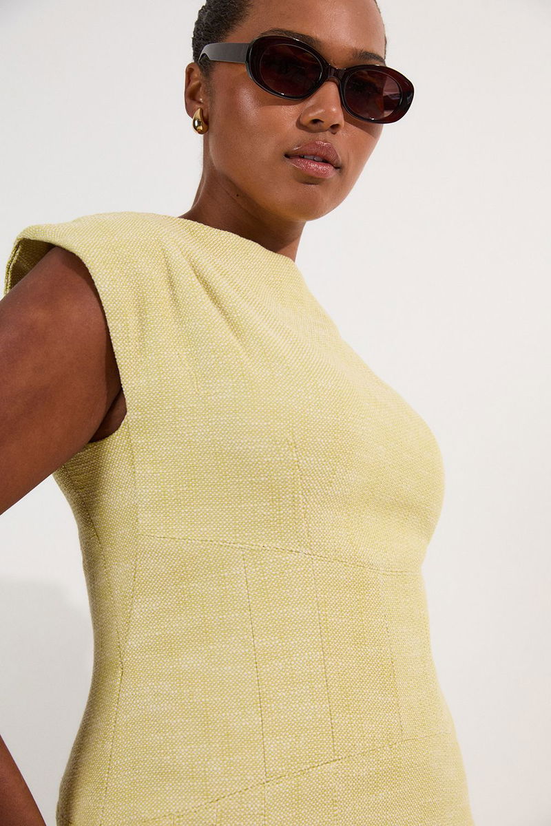Plus Size Spring Tweed Tailored Sleeveless Full Skirted Midi Dress