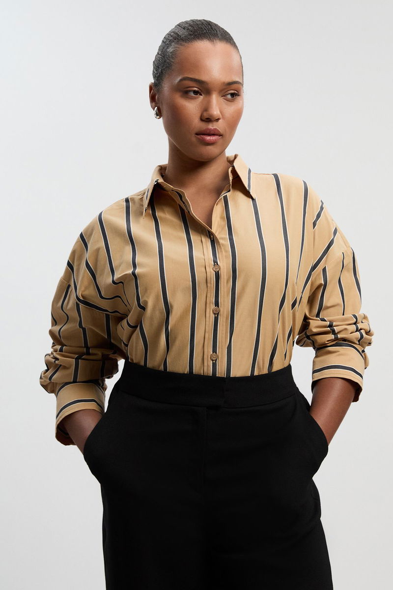 Plus Size Stripe Cotton Oversize Tailored Essential Shirt