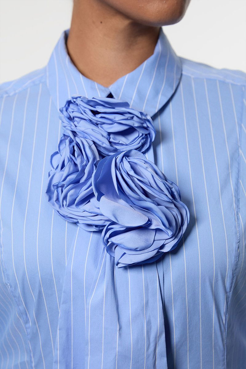 Plus Size Stripe Cotton Rosette Woven Shirt Maxi Dress