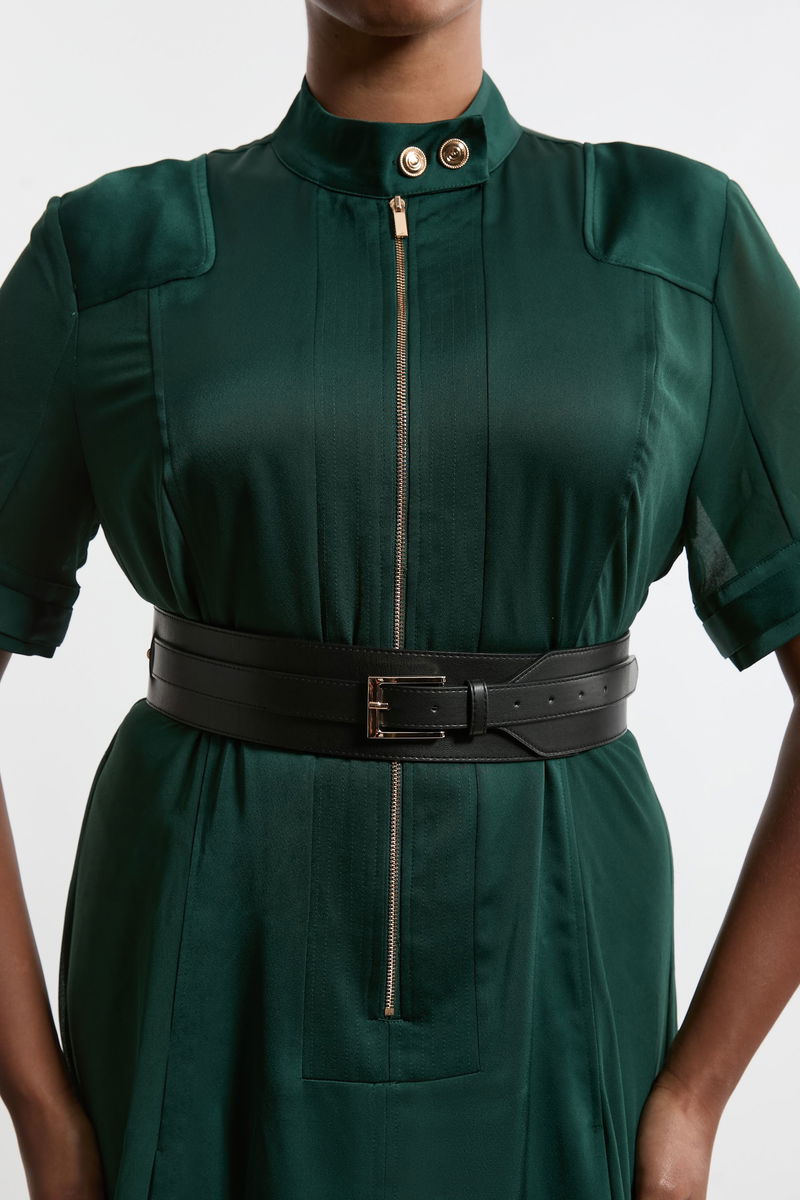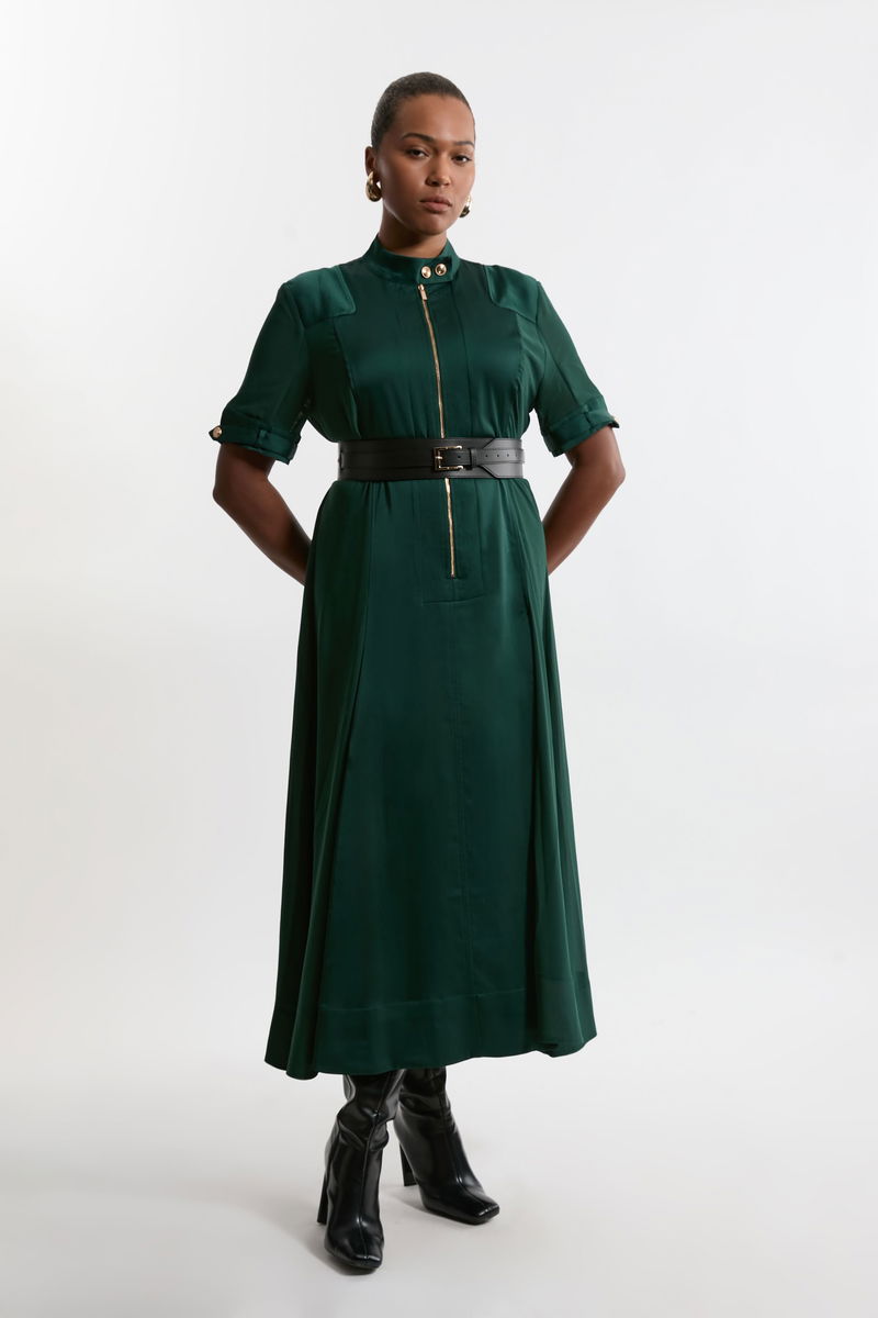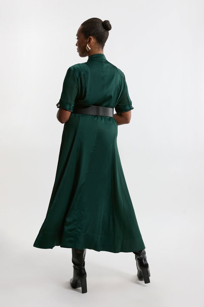 Plus Size Top Stitch Satin Georgette Woven Shirt Maxi Dress