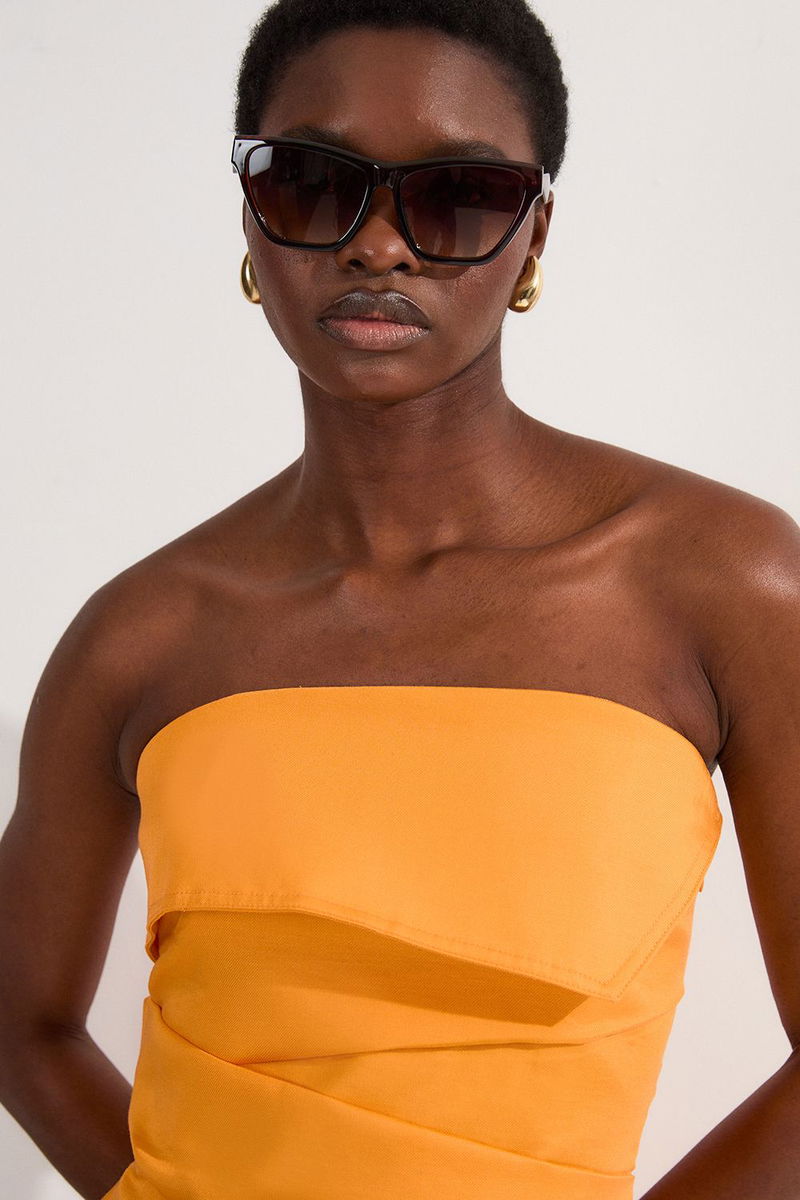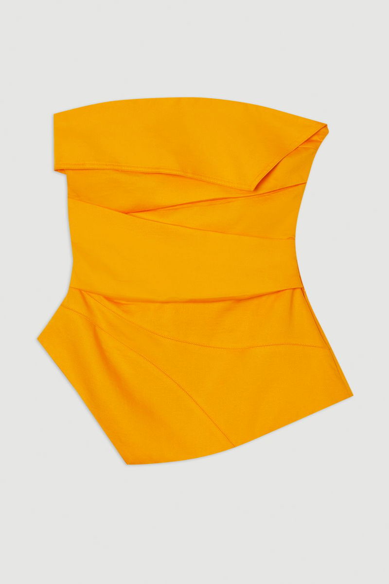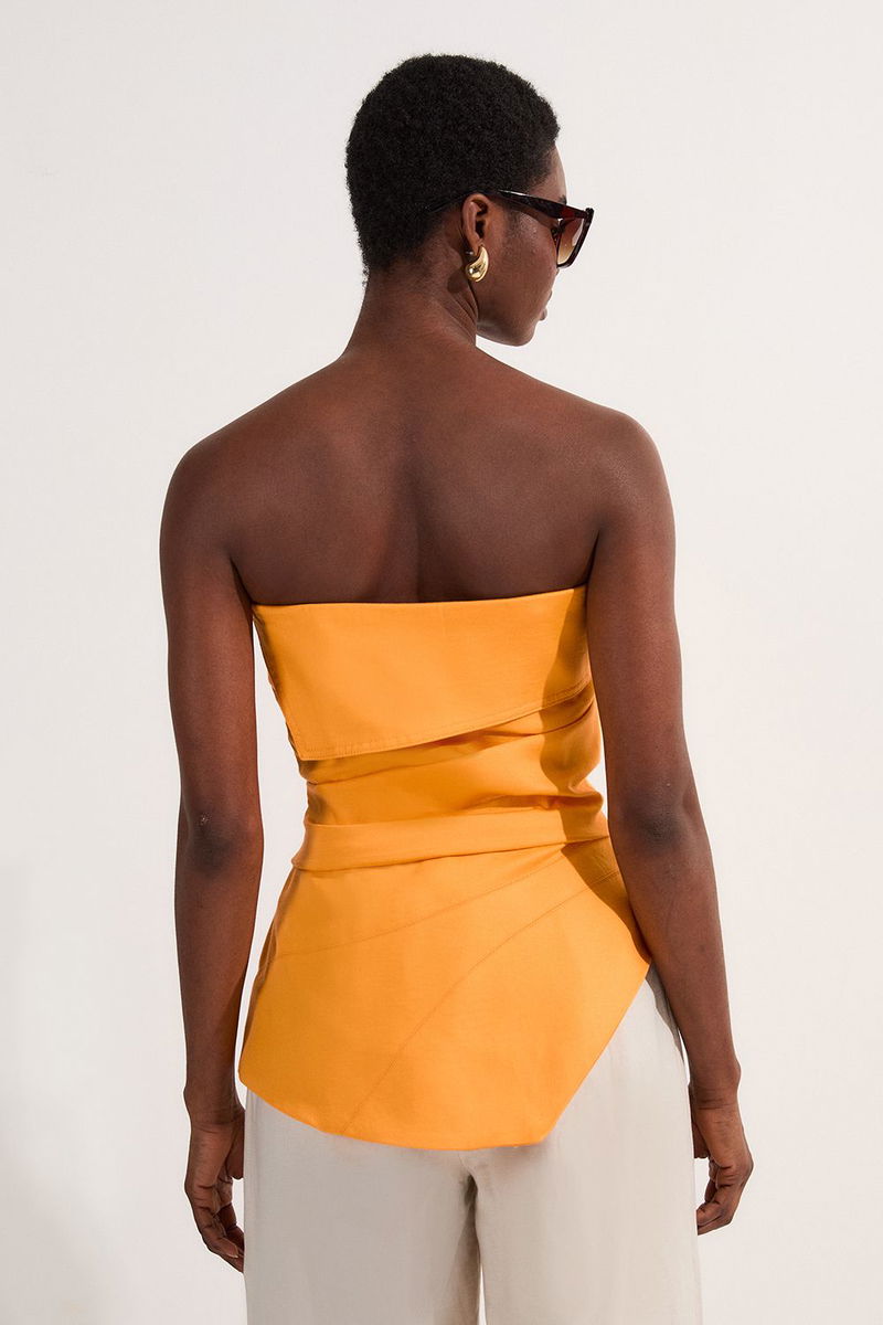 Premium Linen Structured Pleated Tailored Bandeau Top