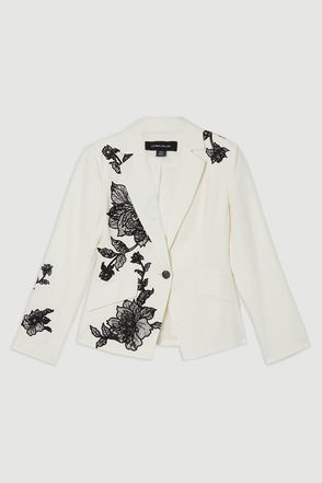 This Karen Millen tailored jacket presents a sophisticated blend of style and versatility. The pinstripe pattern lends a timeless charm, perfect for both professional and casual settings. Its regular fit ensures comfort without compromising on style, making it an ideal choice for various body types. Style this jacket with dark denim jeans and a simple top for a stylish daytime look, or pair it with tailored trousers for a more polished ensemble. The jacket's versatility shines through at family gatherings or casual brunches with friends. For a trendy twist, roll up the sleeves and add statement jewellery. This piece effortlessly transitions from day to night, making it a wardrobe essential for the fashion-forward woman who values both style and practicality.