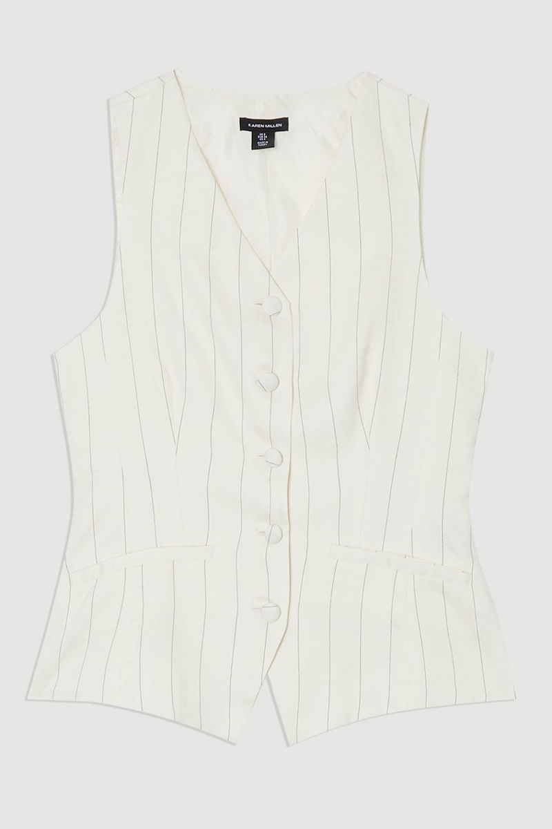 Premium Linen Viscose Pinstripe Tailored Waistcoat