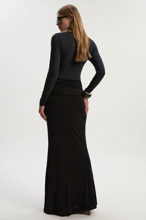 Premium Stretch Crepe Jersey Plunge Neck Maxi Dress