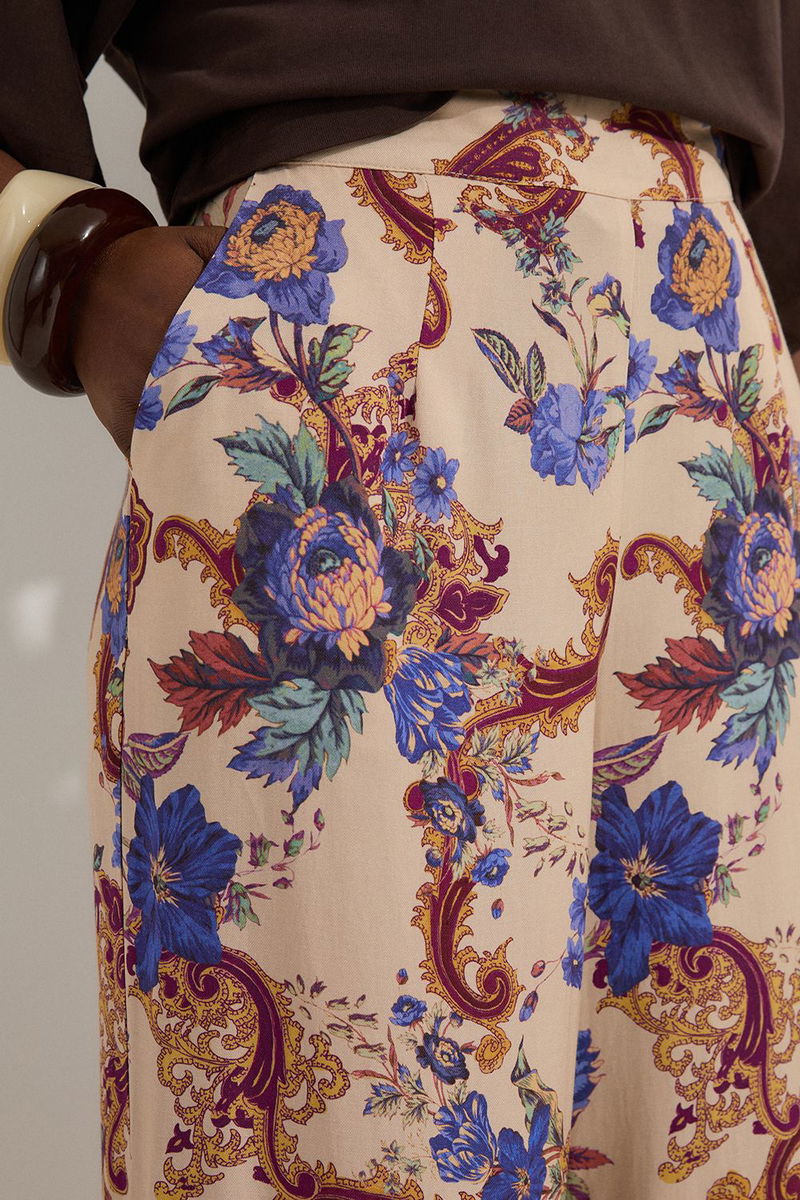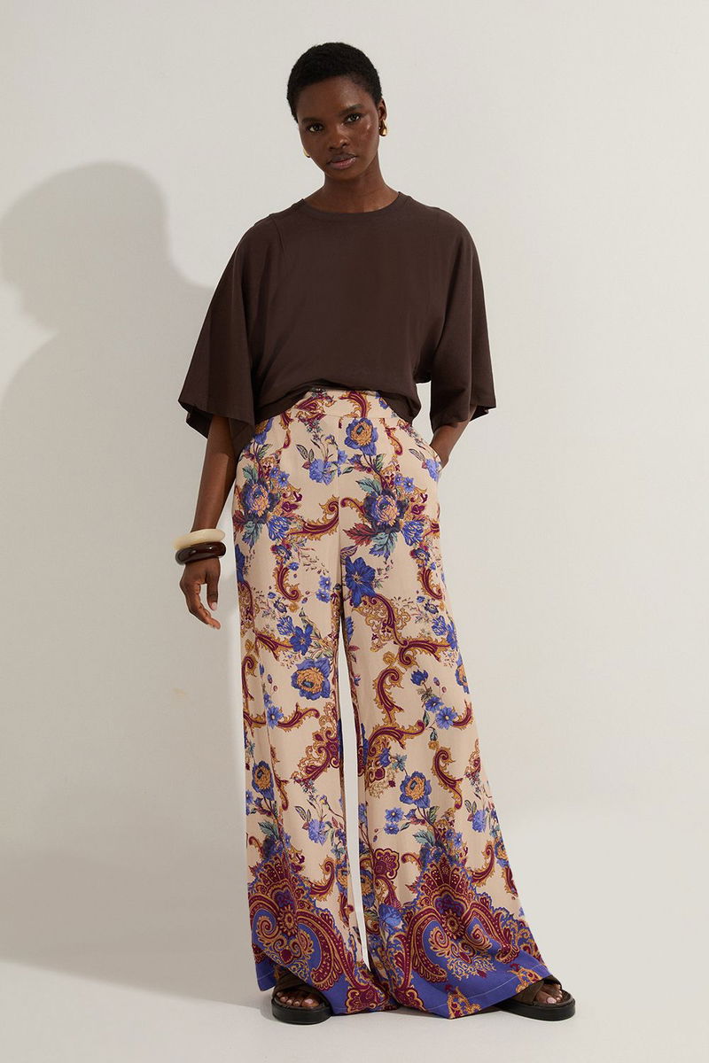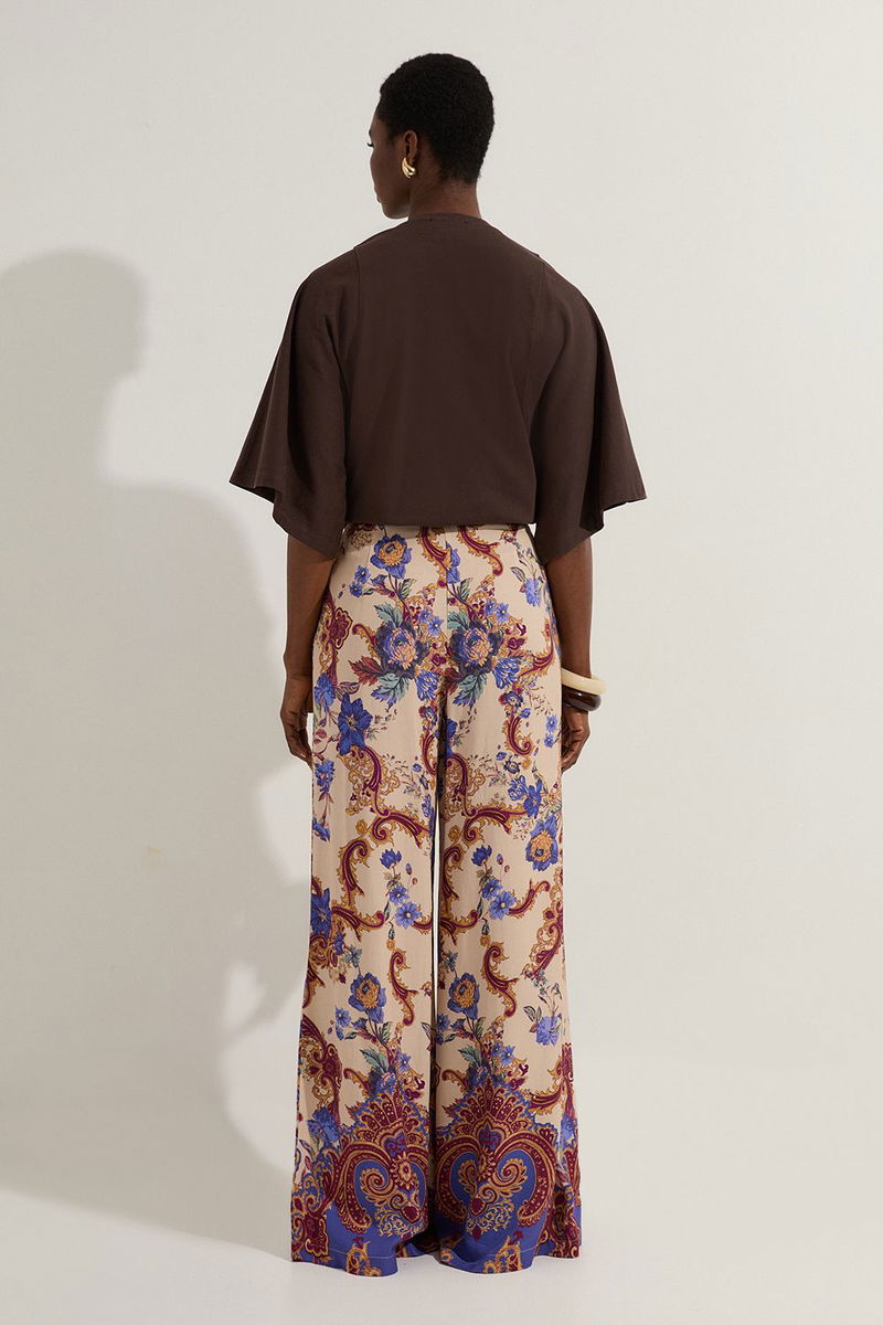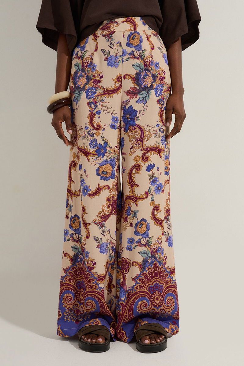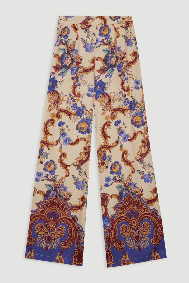 Premium Viscose Linen Paisley Border Print Woven Wide Leg Trouser
