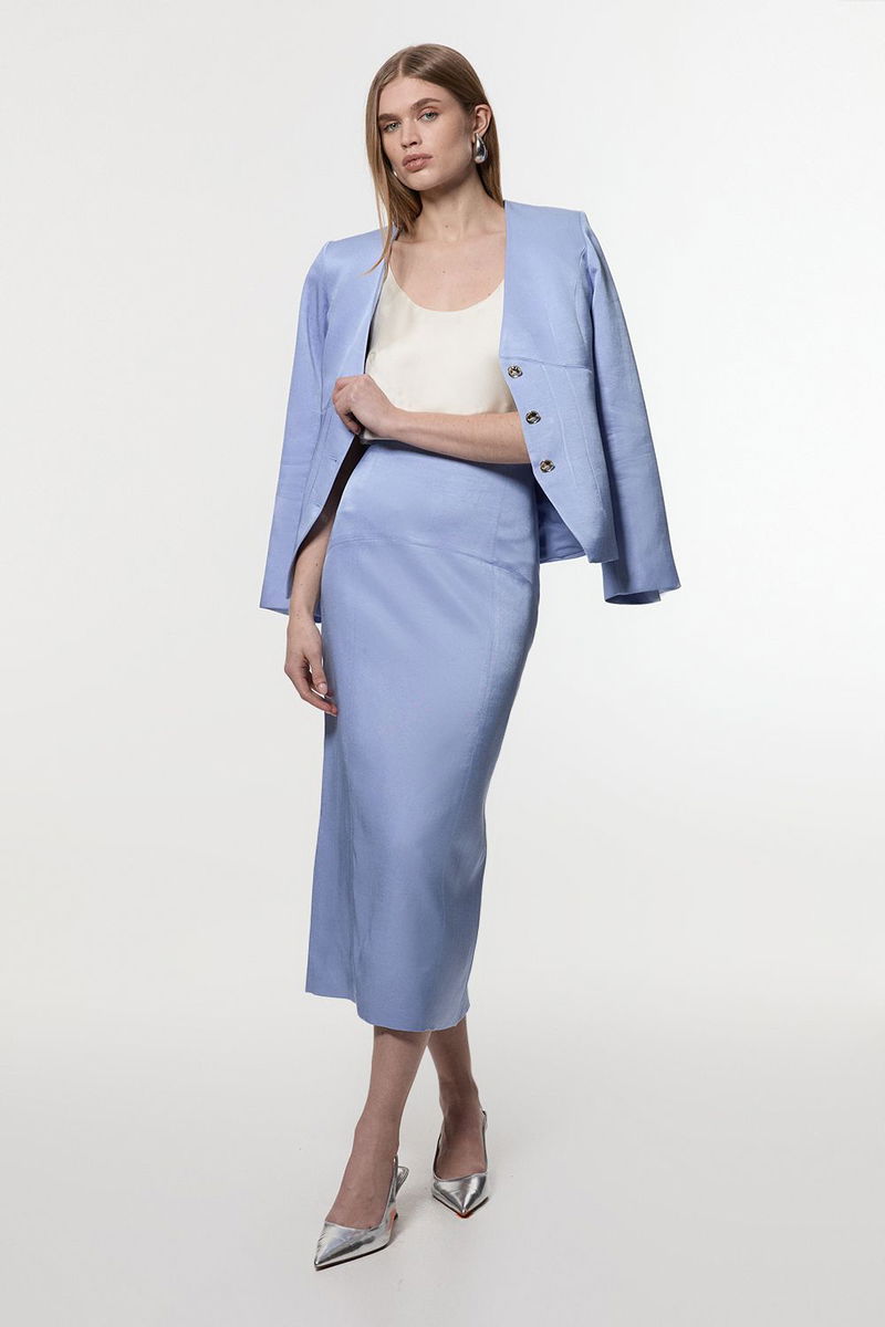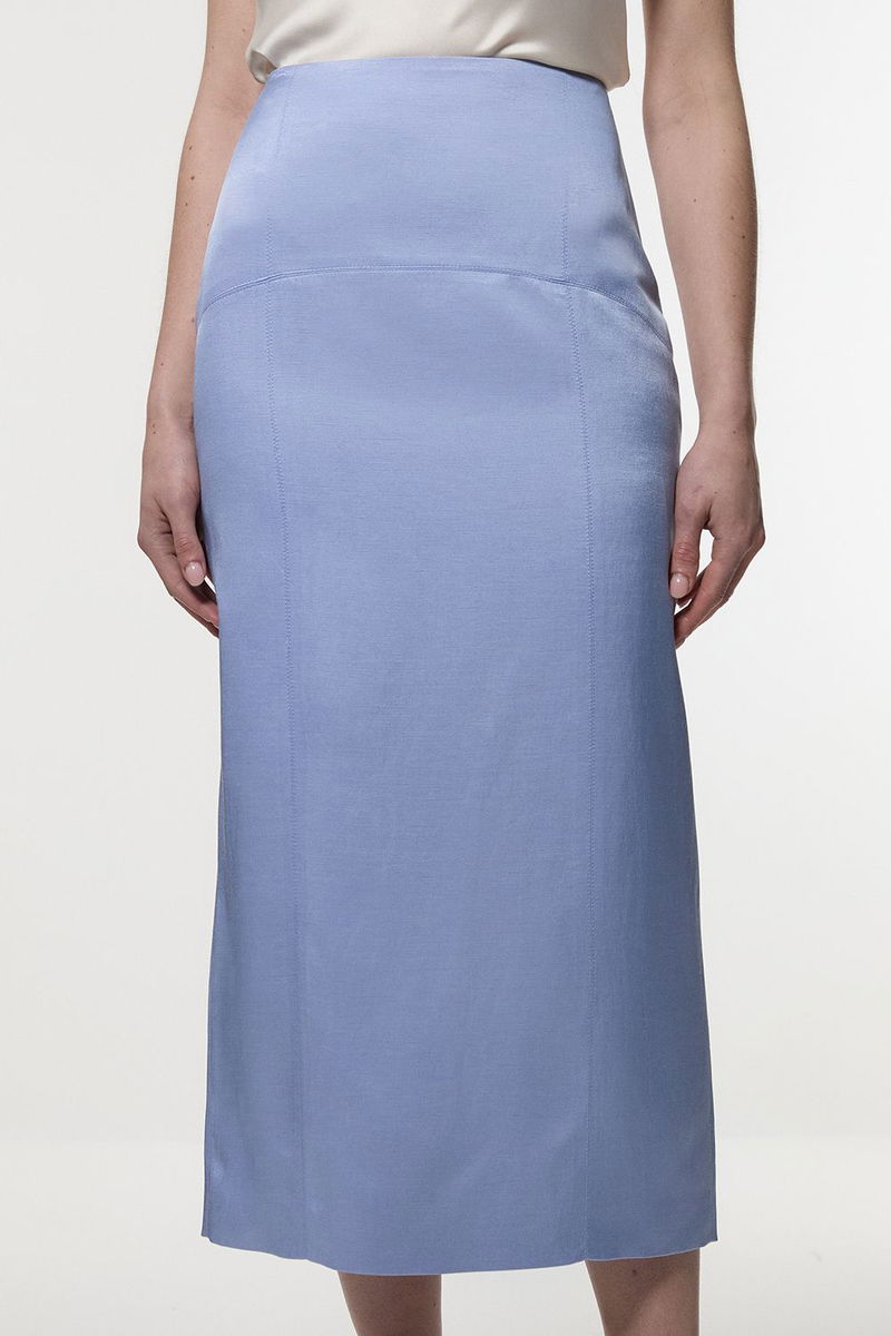 Premium Viscose Linen Tailored Column Midi Skirt