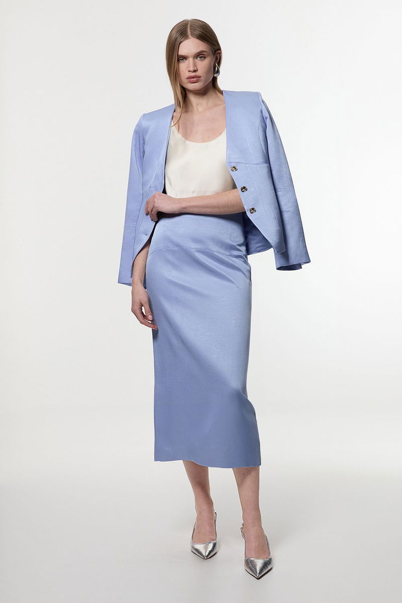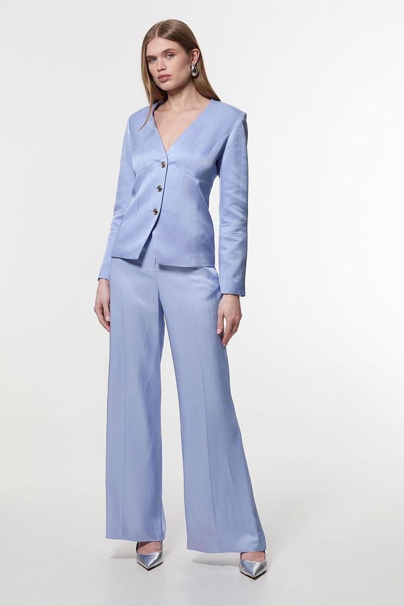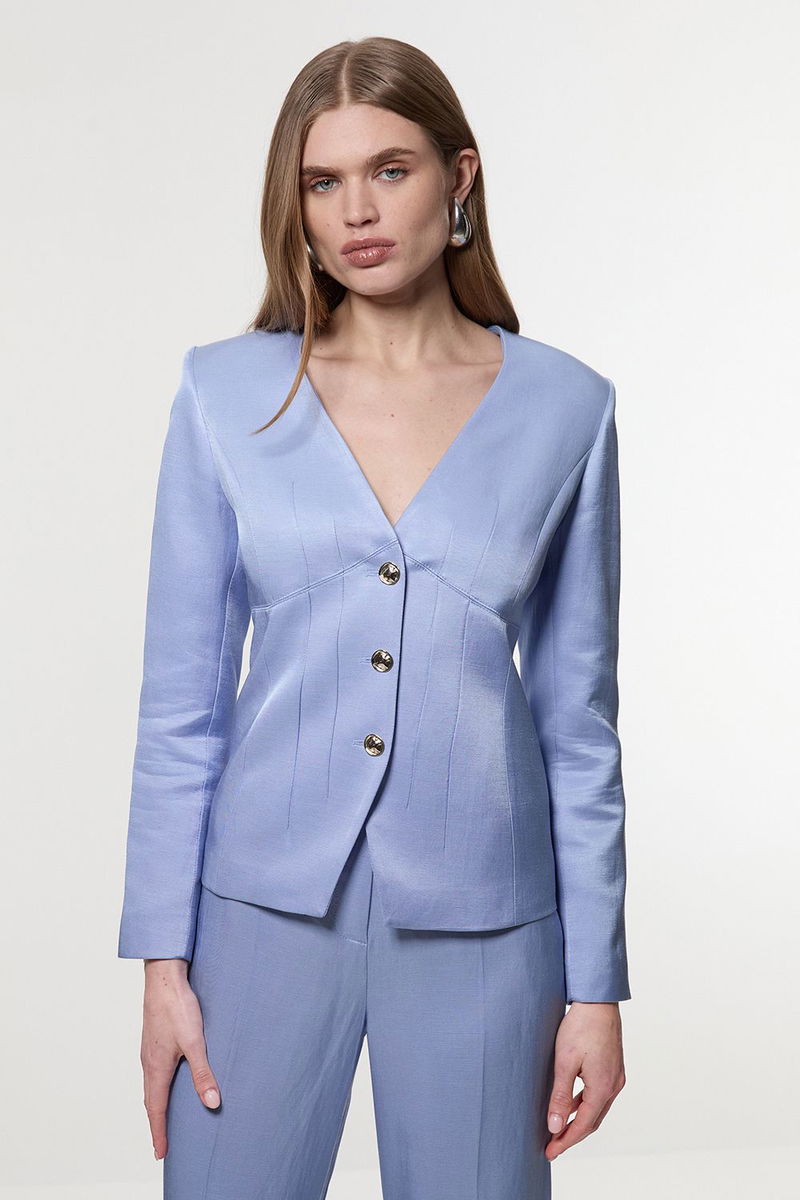 Premium Viscose Linen Tailored Darted Single Breasted Jacket
