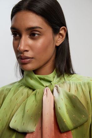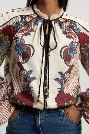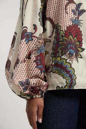 Print Shirred Detail Dobby High Neck Woven Blouse