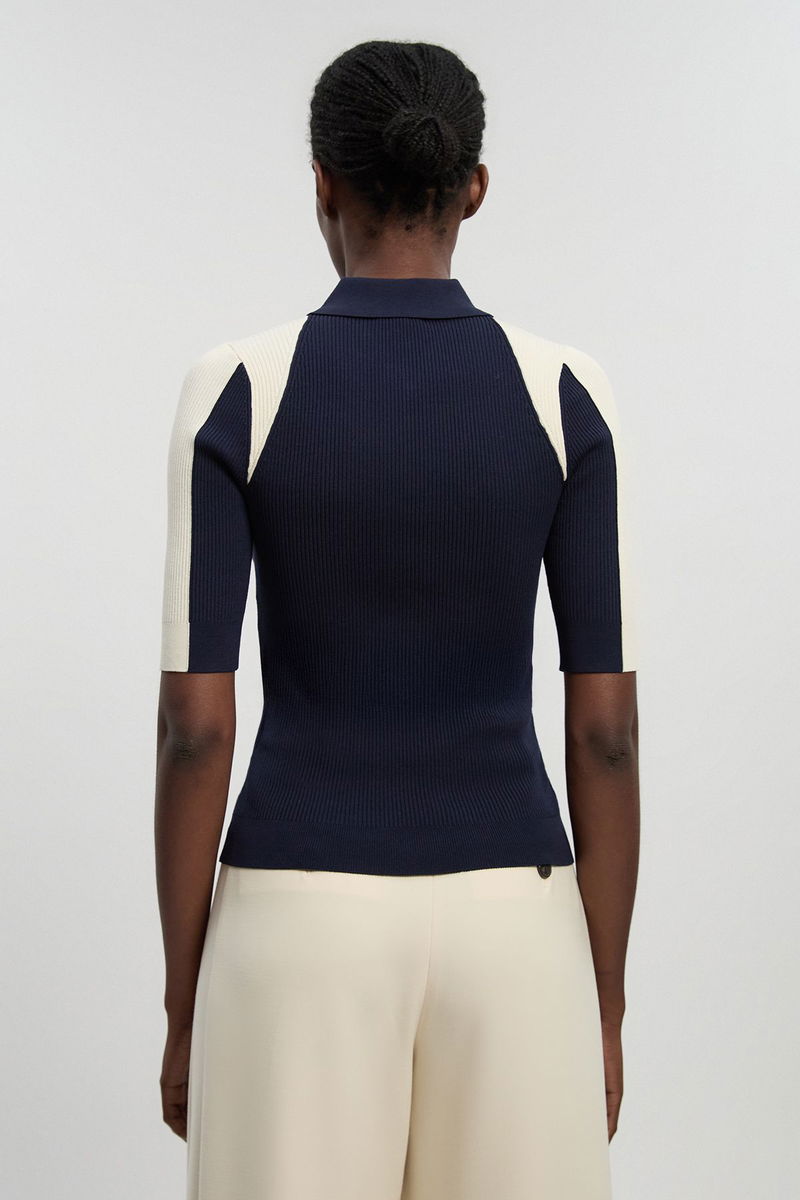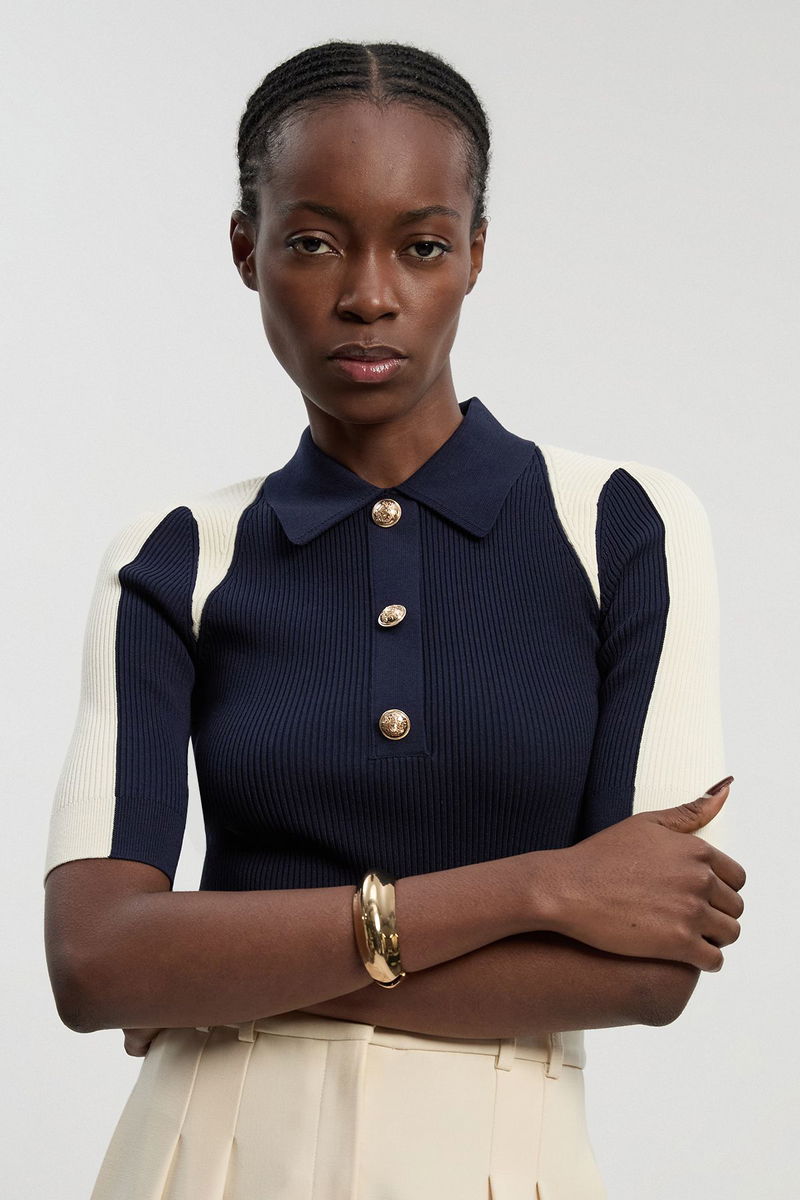 Rib Knit Military Colour Block Short Sleeve Top