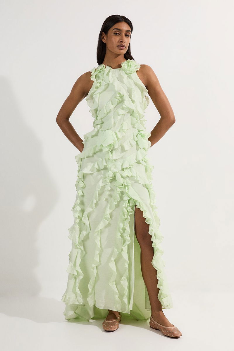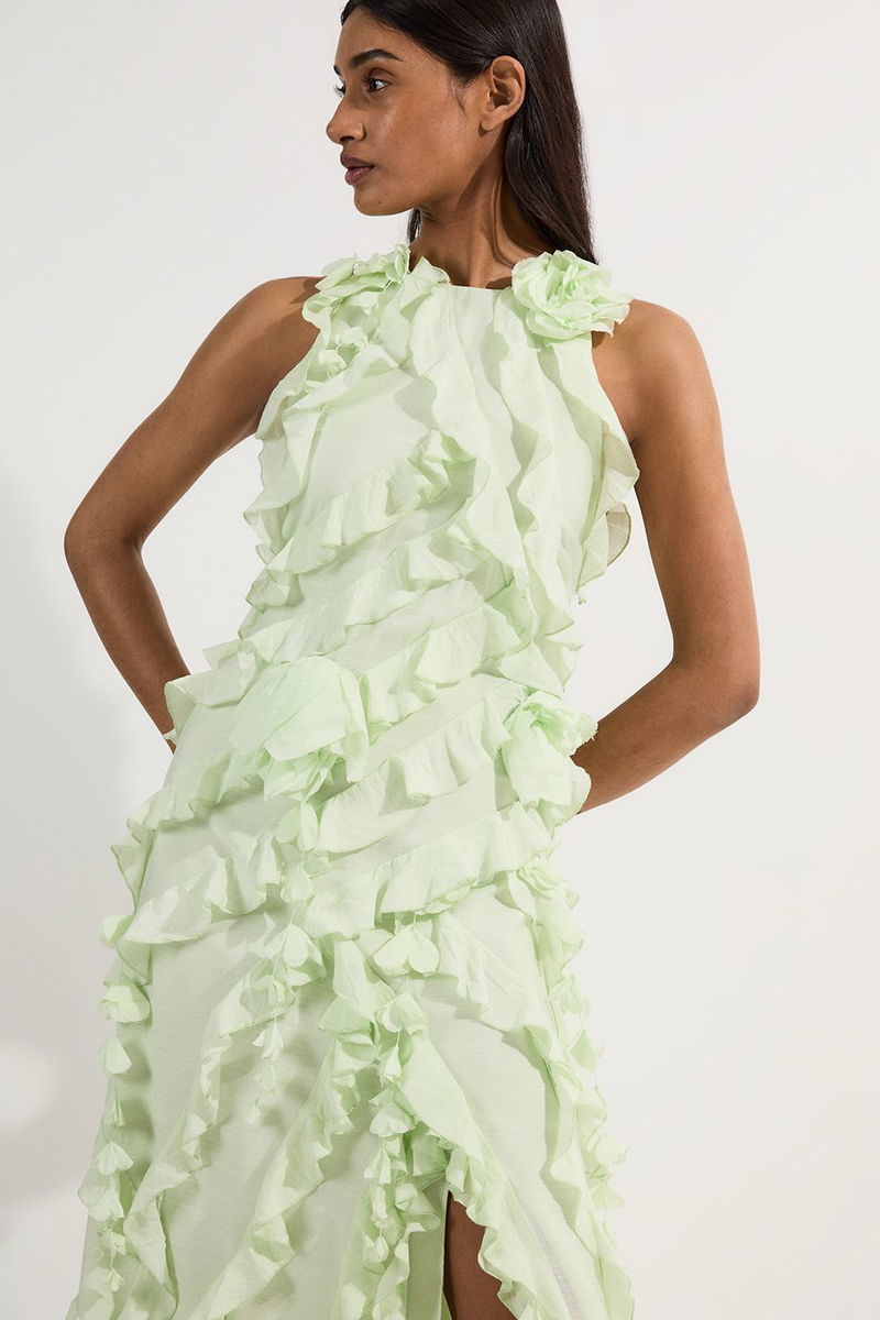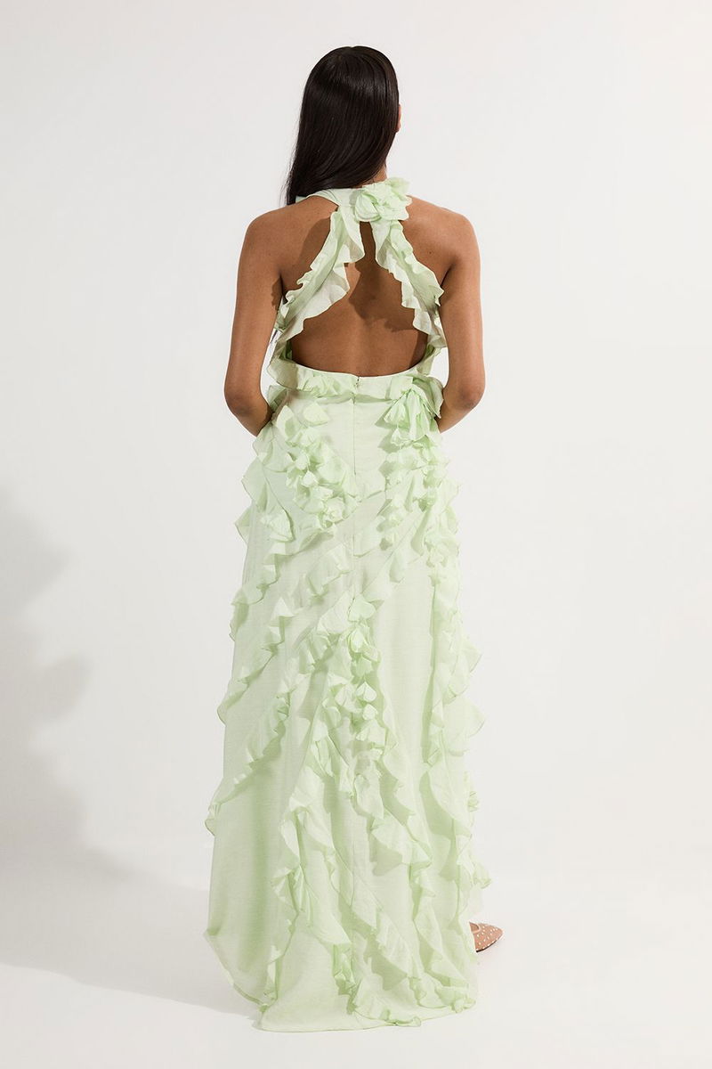 Ruffle & Applique Racer Front Viscose Woven Maxi Dress