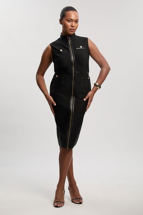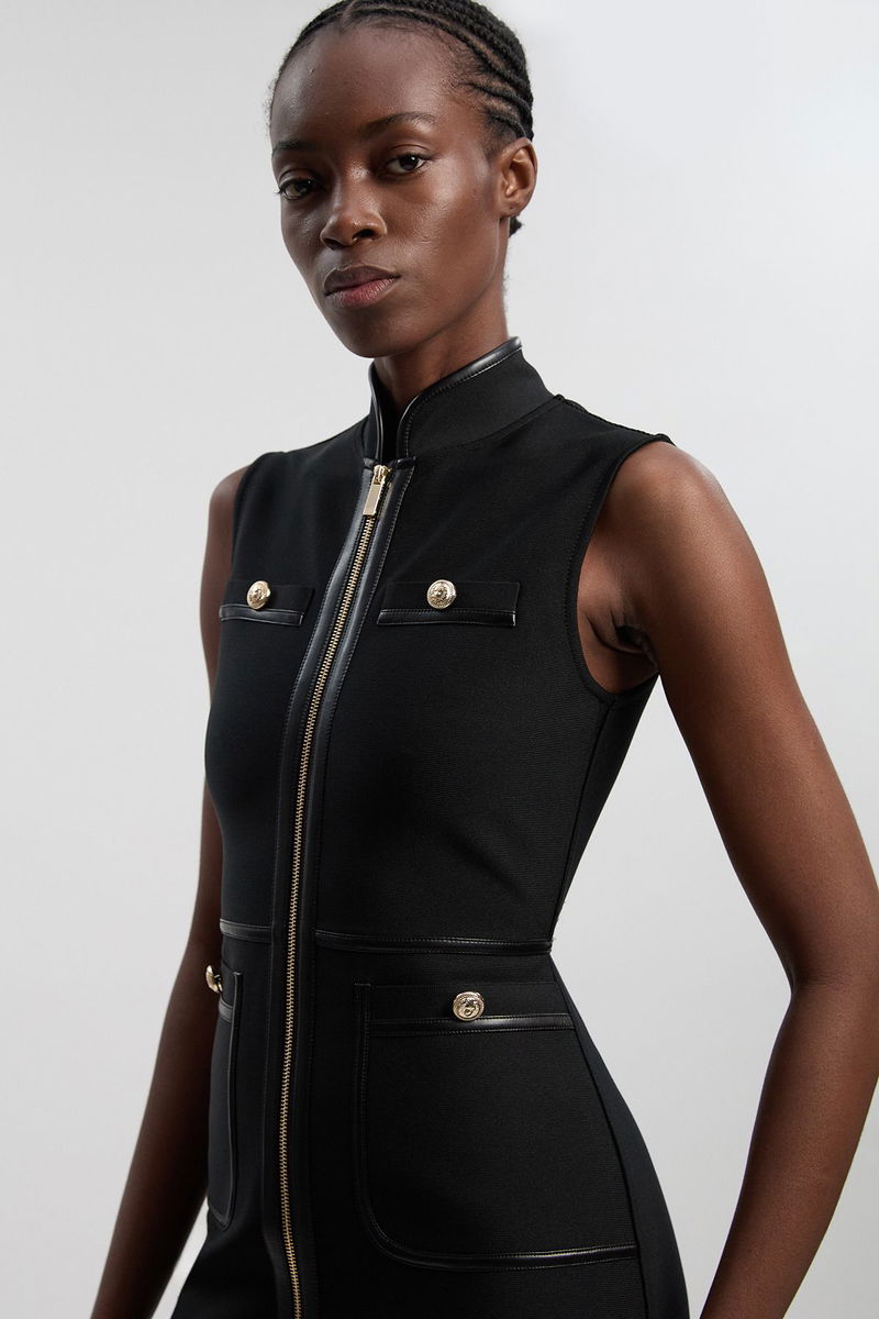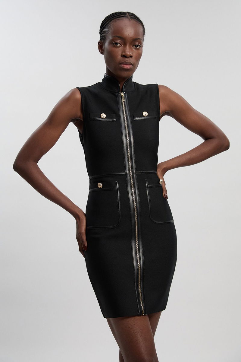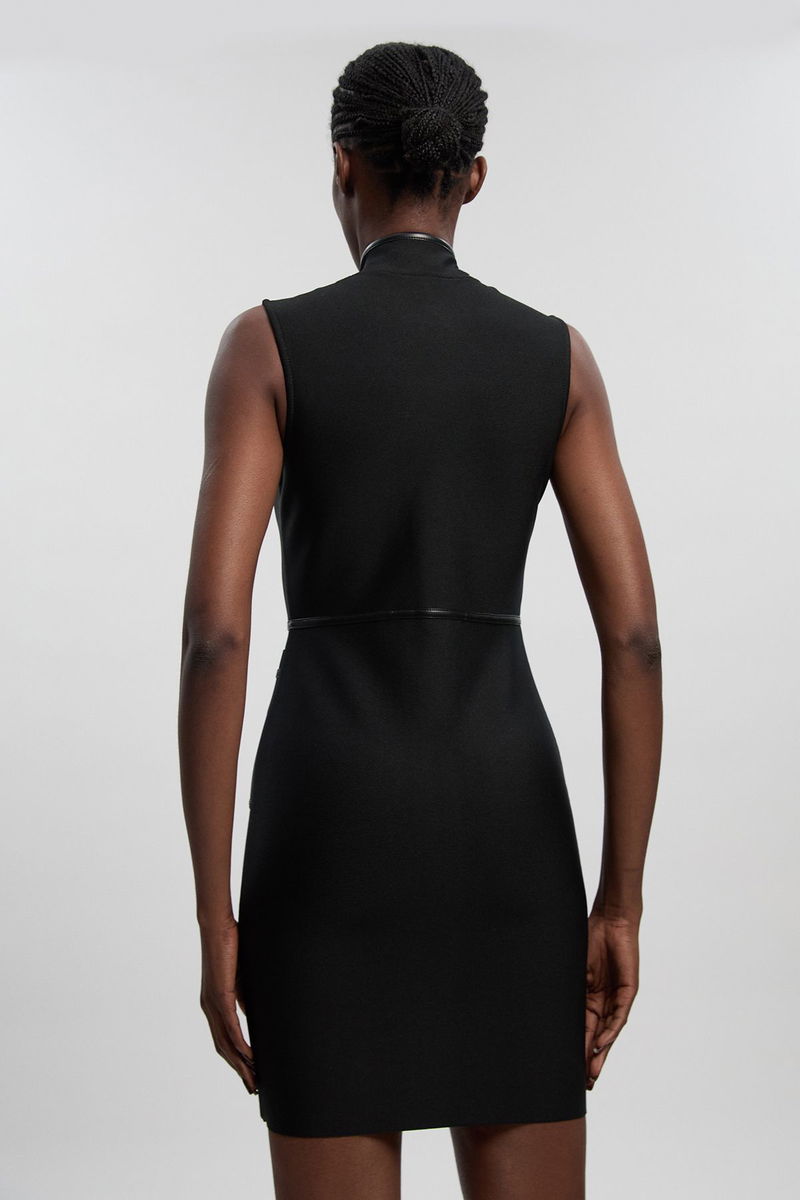 Sleeveless Pu Tipped Military Bandage Mini Dress