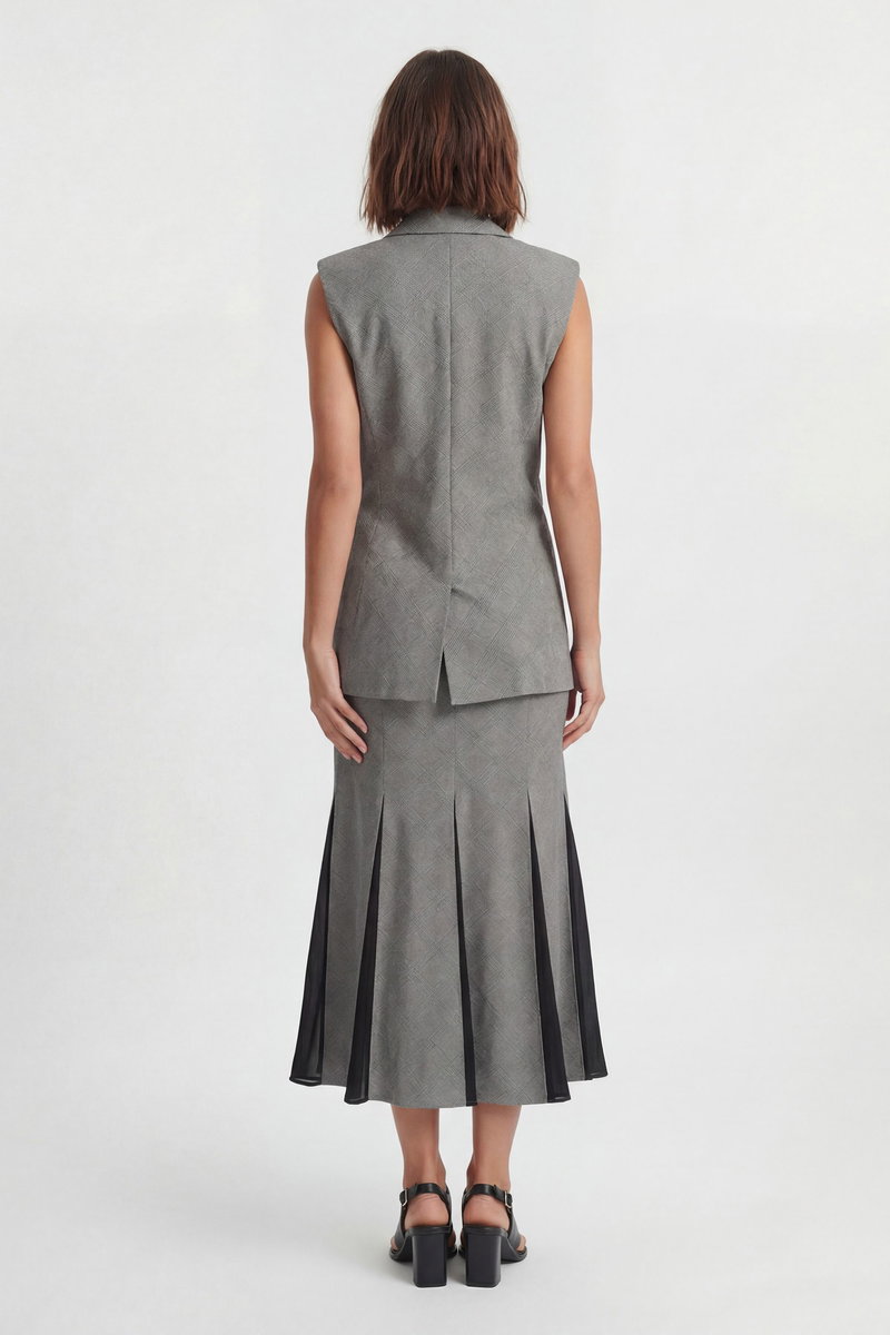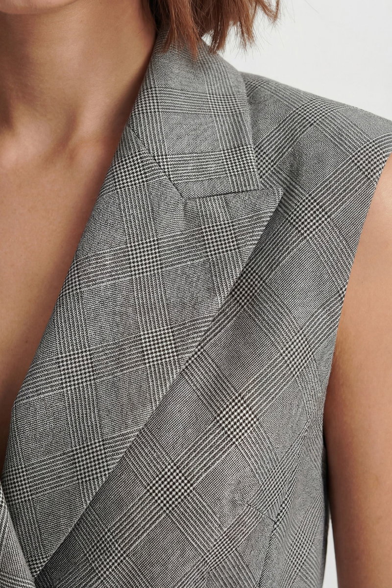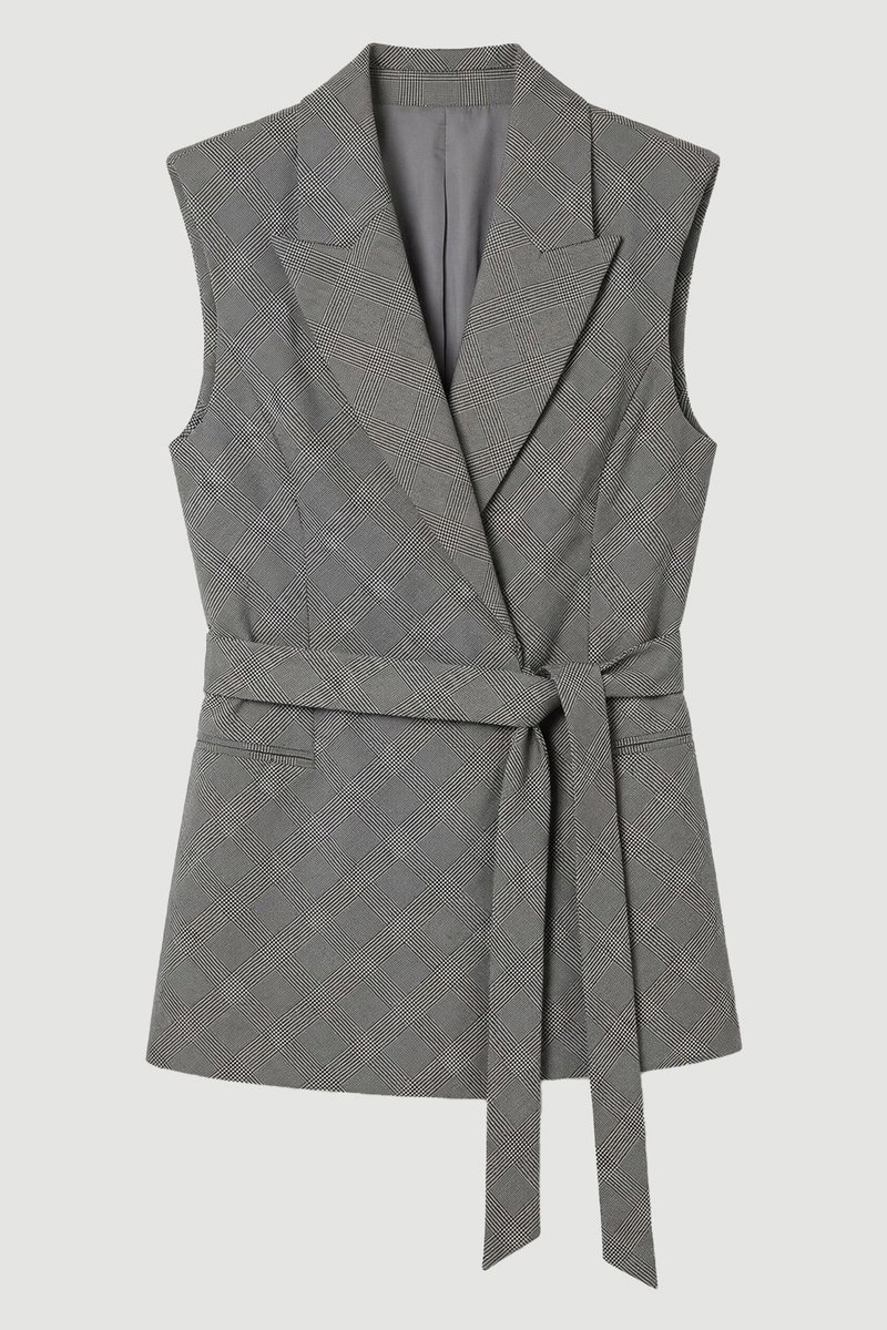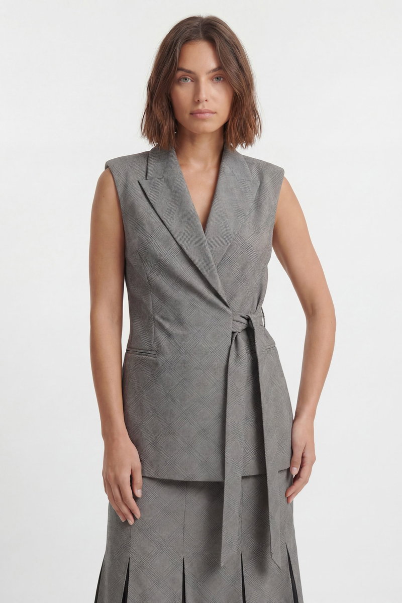 Soft Tailored Check Wrap Detail Sleeveless Blazer