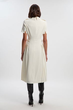 Soft Tailored Colour Block High Neck Pleated Midi Dress