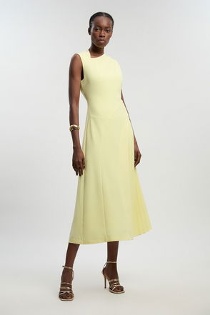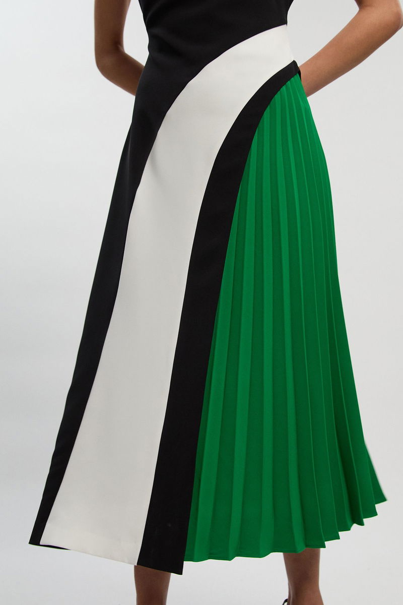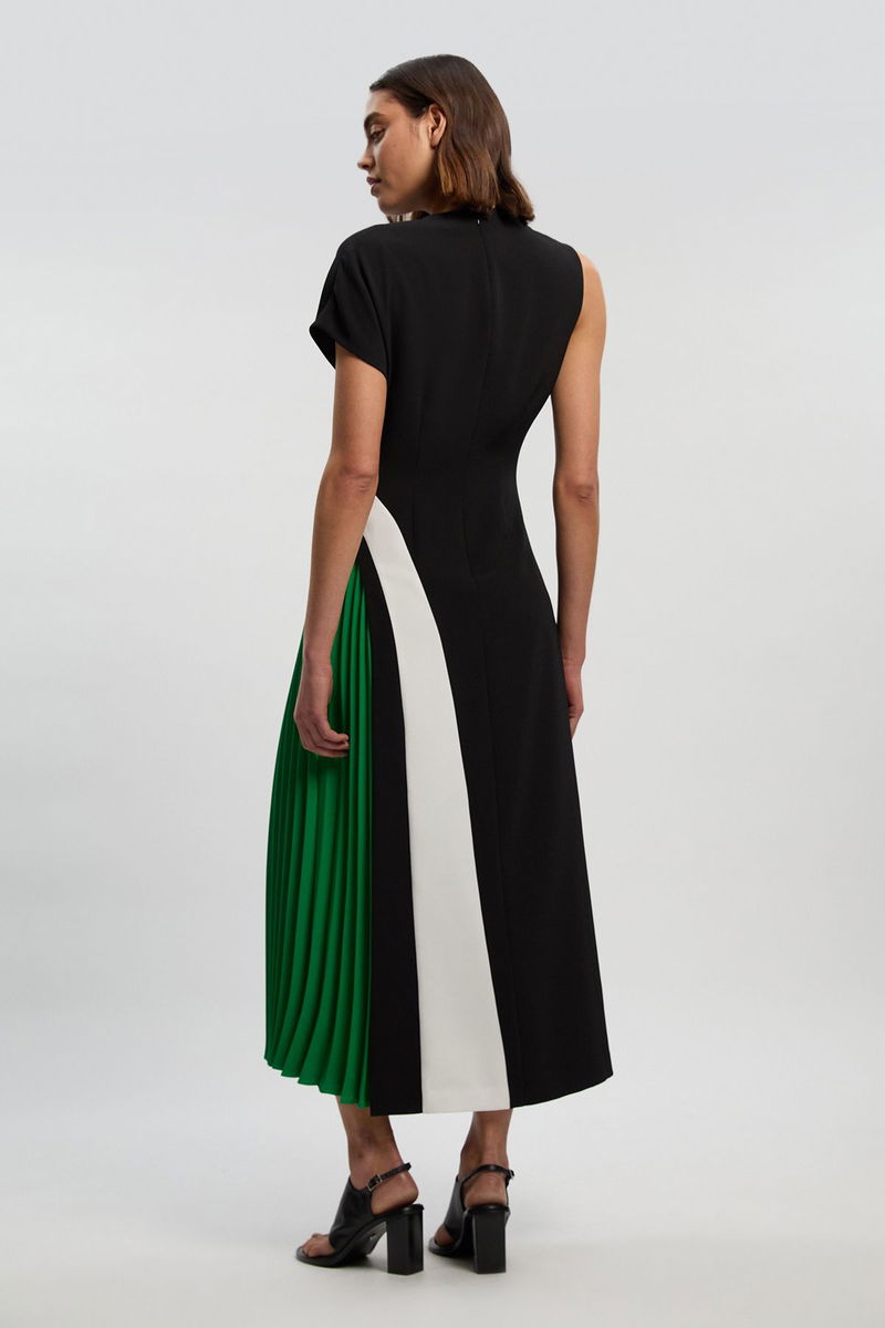 Soft Tailored Colour Block High Neck Pleated Midi Dress