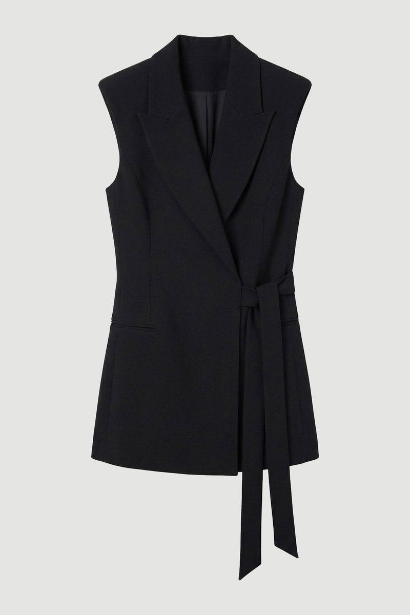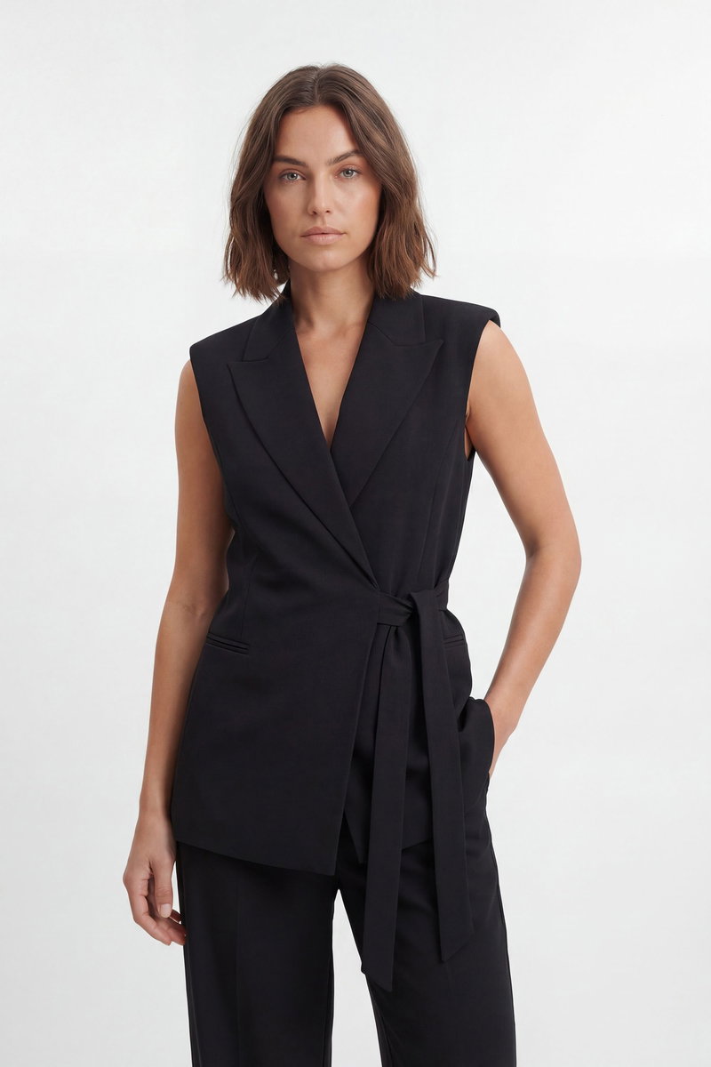 Soft Tailored Wrap Detail Sleeveless Blazer