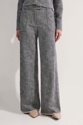 These cropped wide-leg trousers create a modern, relaxed shape while the high waistband defines your silhouette. Style with a fitted tank top for daytime sophistication, or pair with a crisp white shirt for a more structured look. The decorative button detailing adds a distinctive touch that reflects Karen Millen's attention to refined details. Perfect for family brunches, or casual workplace settings, these versatile trousers transition effortlessly from day to evening when paired with a silk blouse and strappy sandals. The neutral tone makes them an excellent foundation piece for your wardrobe, working with both bold and subtle colour palettes throughout the seasons.