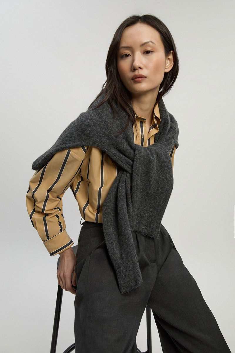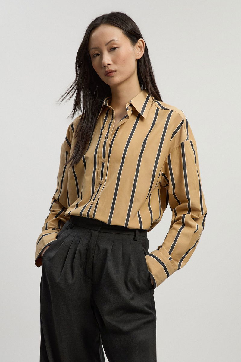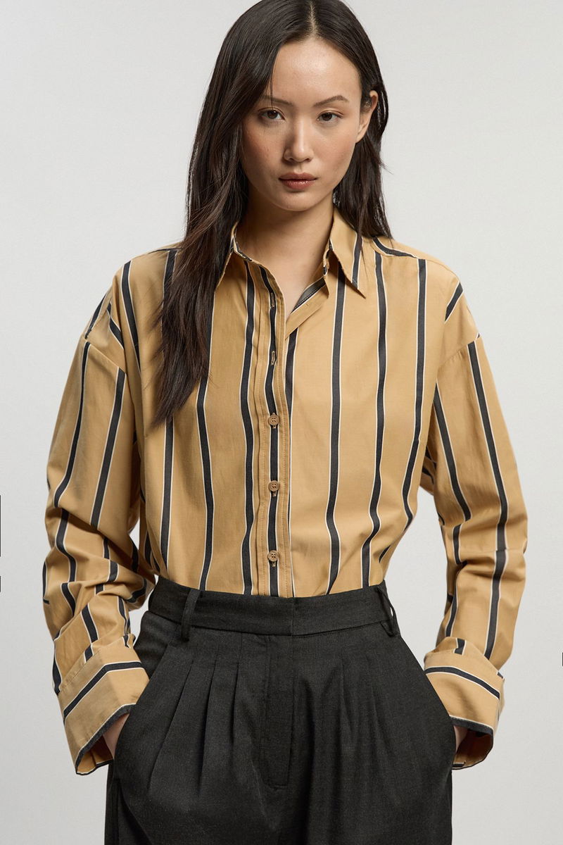 This essential striped shirt from Karen Millen combines timeless design with contemporary proportions. The oversized tailored fit offers a modern take on a wardrobe classic, creating an effortlessly chic look that works for various daytime occasions. Style tucked into high-waisted trousers with the sleeves rolled up for a polished yet relaxed office ensemble, or wear open over a simple vest with your favourite jeans for weekend brunches. The cotton fabric ensures breathability and comfort, making it ideal for family gatherings or casual meet-ups with friends. For cooler days, layer under a lightweight knit with the collar peeking through, or simply pair with tailored shorts and trainers for an elevated casual look. This versatile piece transitions seamlessly from day to evening, maintaining that perfect balance of refinement and ease that defines the Karen Millen aesthetic.