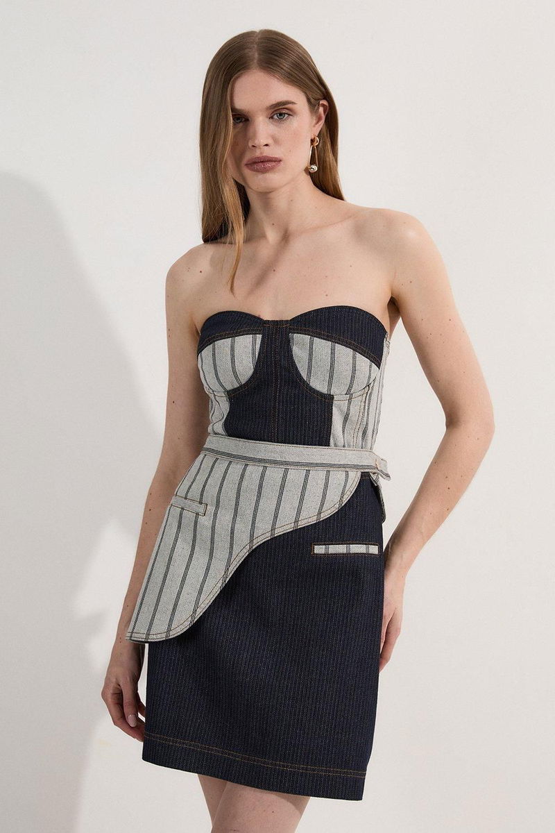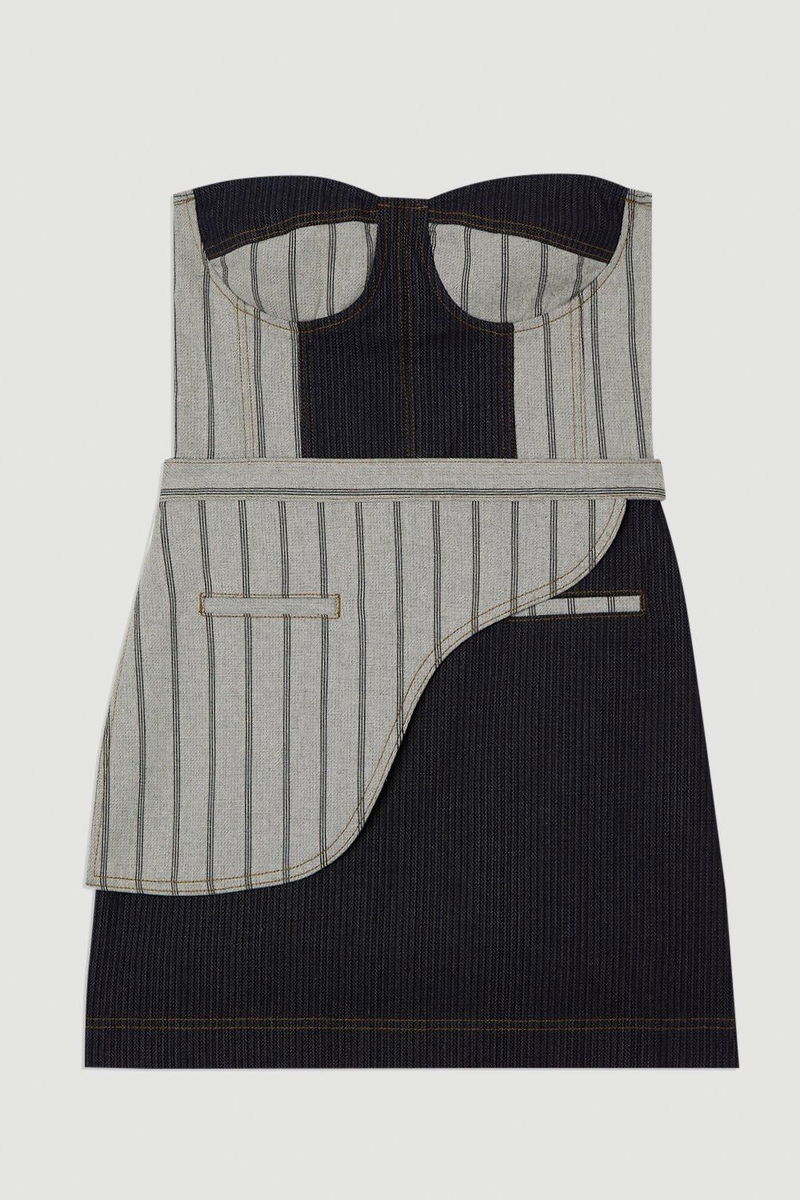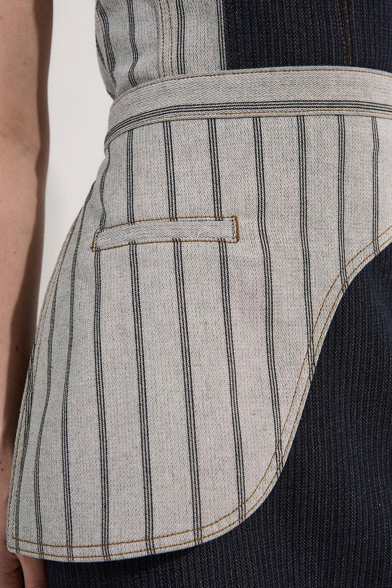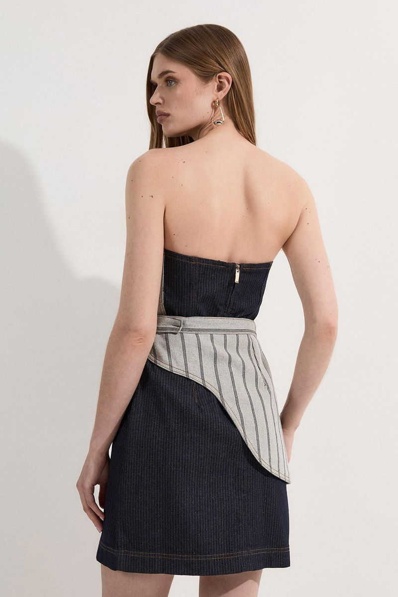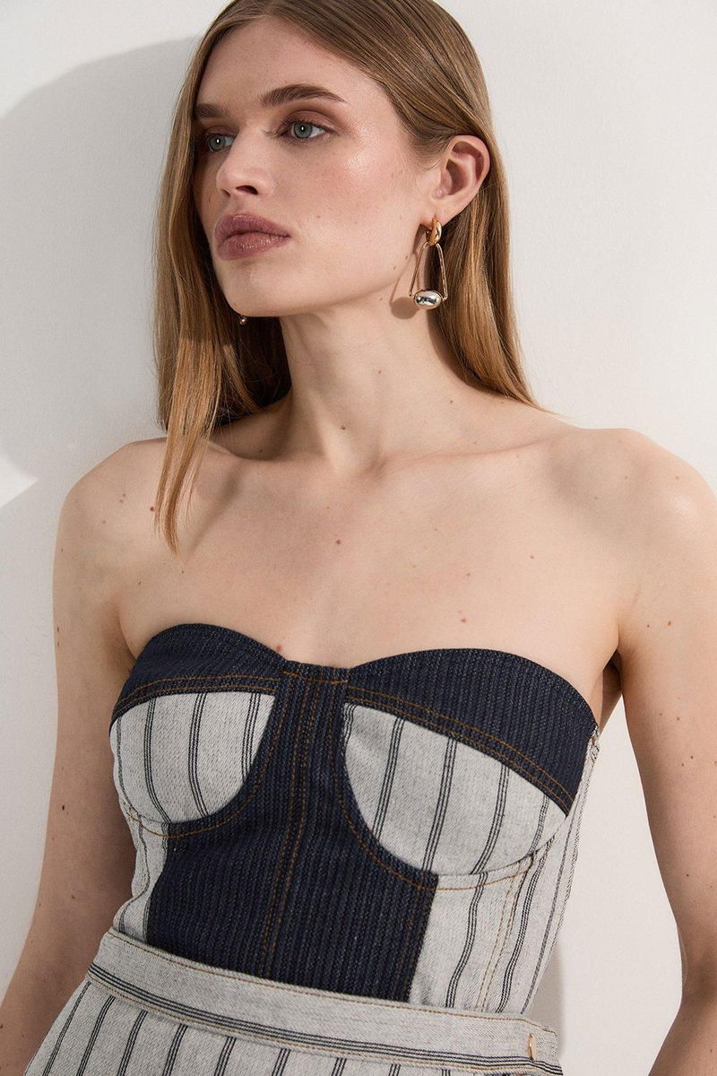 Stripe Denim Belt Detail Bandeau Midi Dress