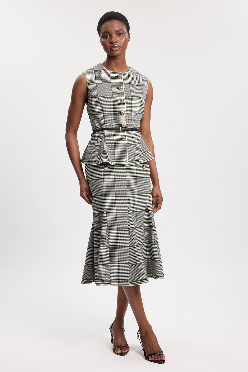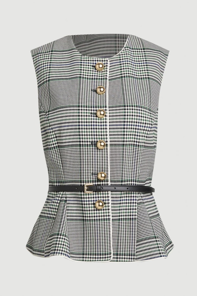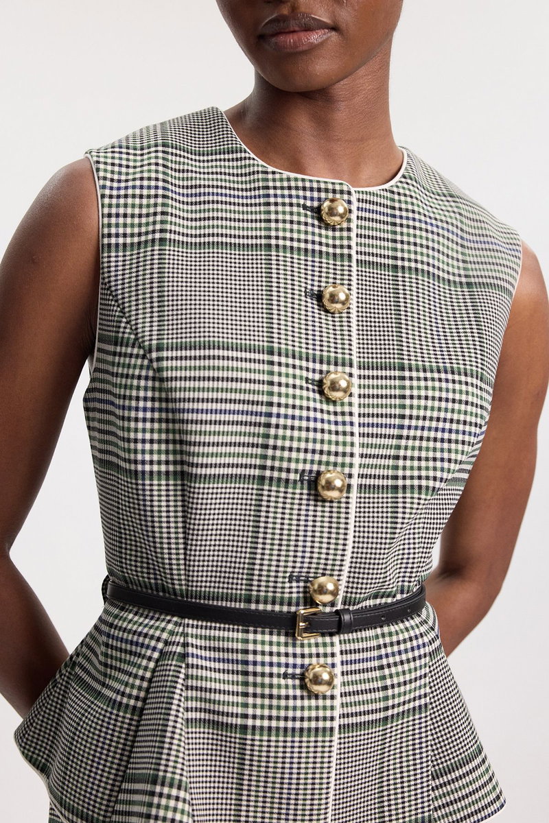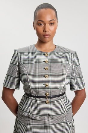 Tailored Check Belted Peplum Jacket