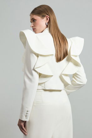 From statement glamour to understated elegance, this latest selection of occasion wear covers every moment. High-impact details serve the dramatic dresser, while sleek tailoring and monochrome combinations cater to those with a polished and pared-back aesthetic. Make a statement with our striking blazer, which features a dramatic, ruffled design and double breasted buttons. Style it simply with the matching trousers and heeled boots or statement heels for a look that will take you from wedding guest days to party season events.