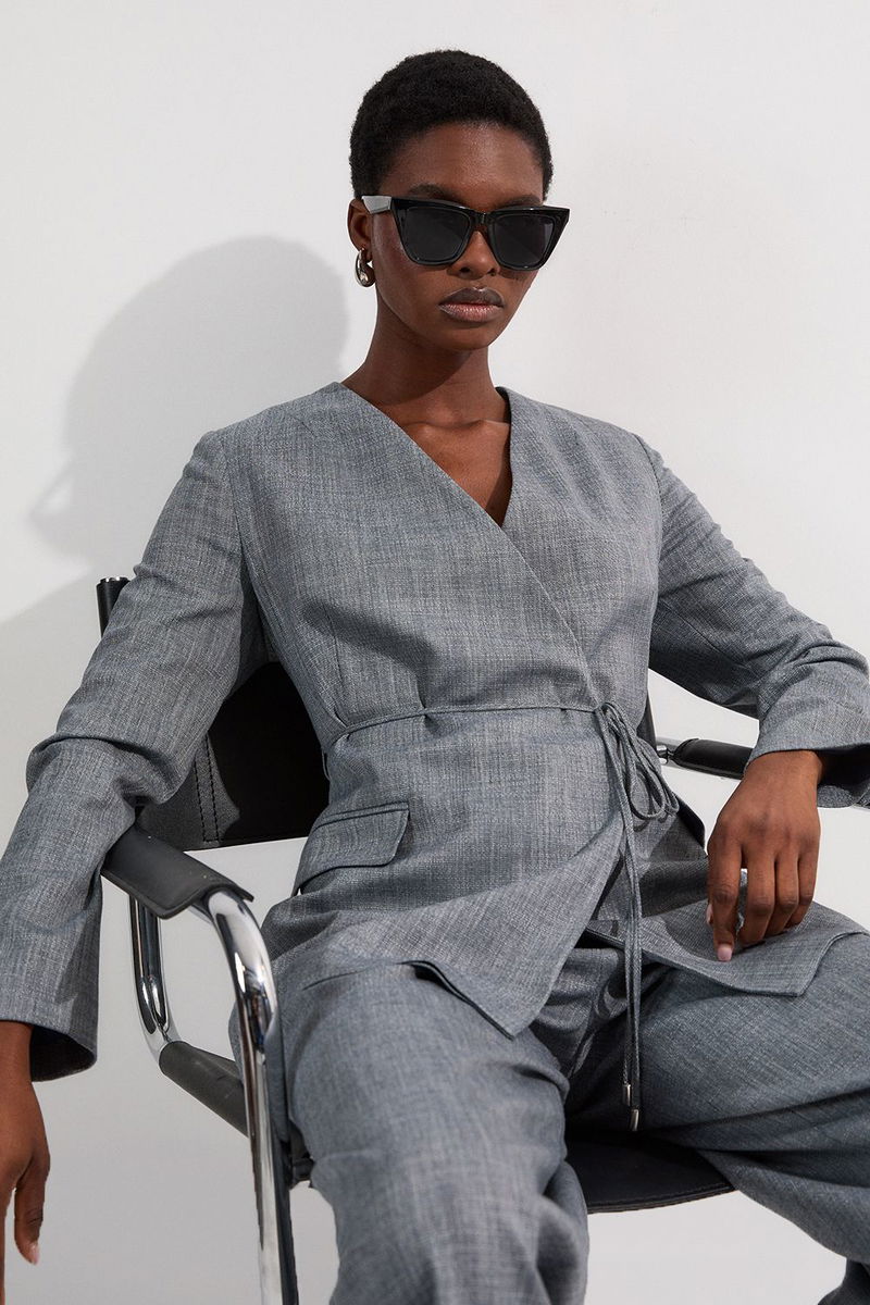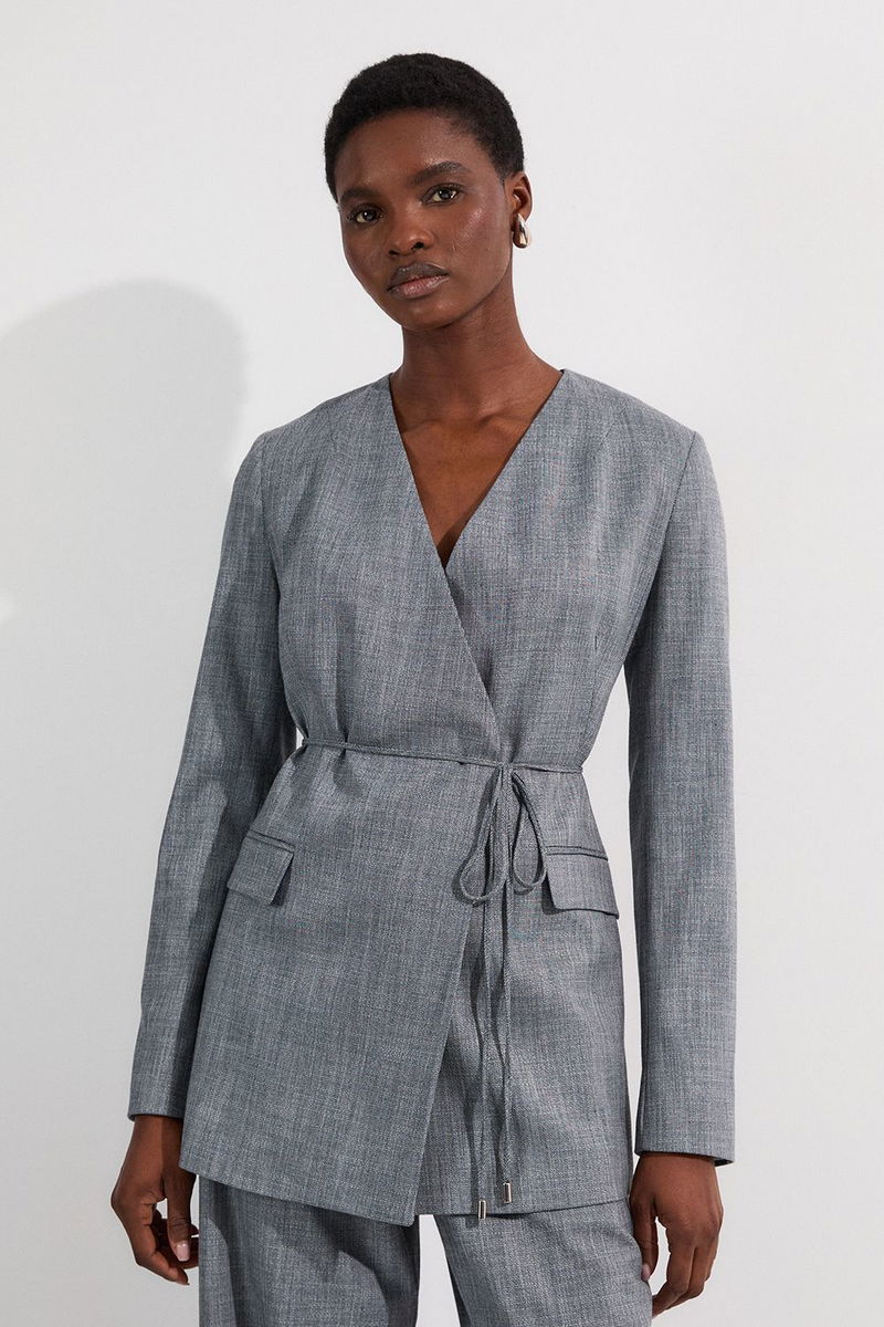 Tailored Marl Tie Waist Blazer