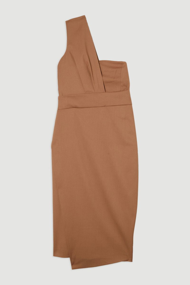 Tailored One Shoulder Tuck Detail Pencil Midi Dress