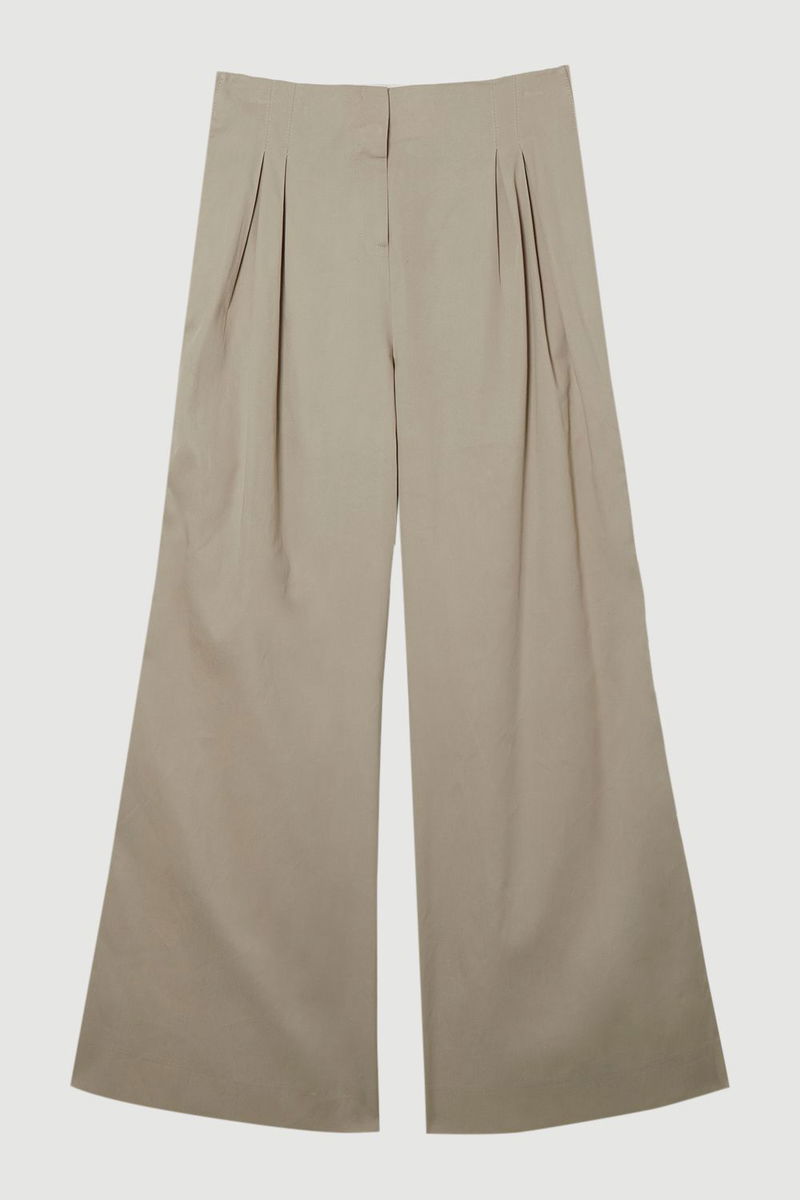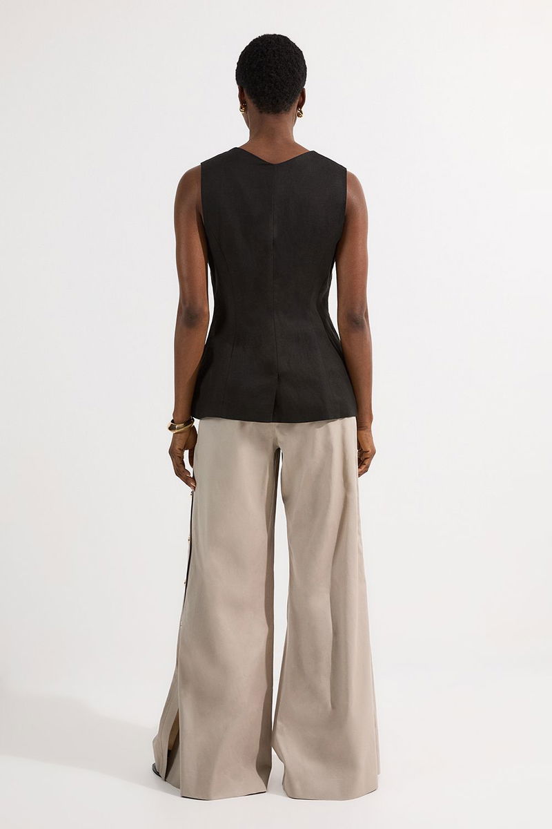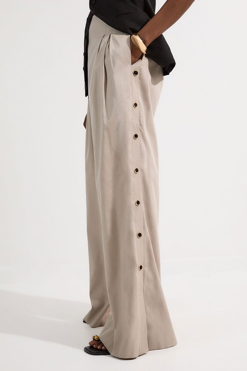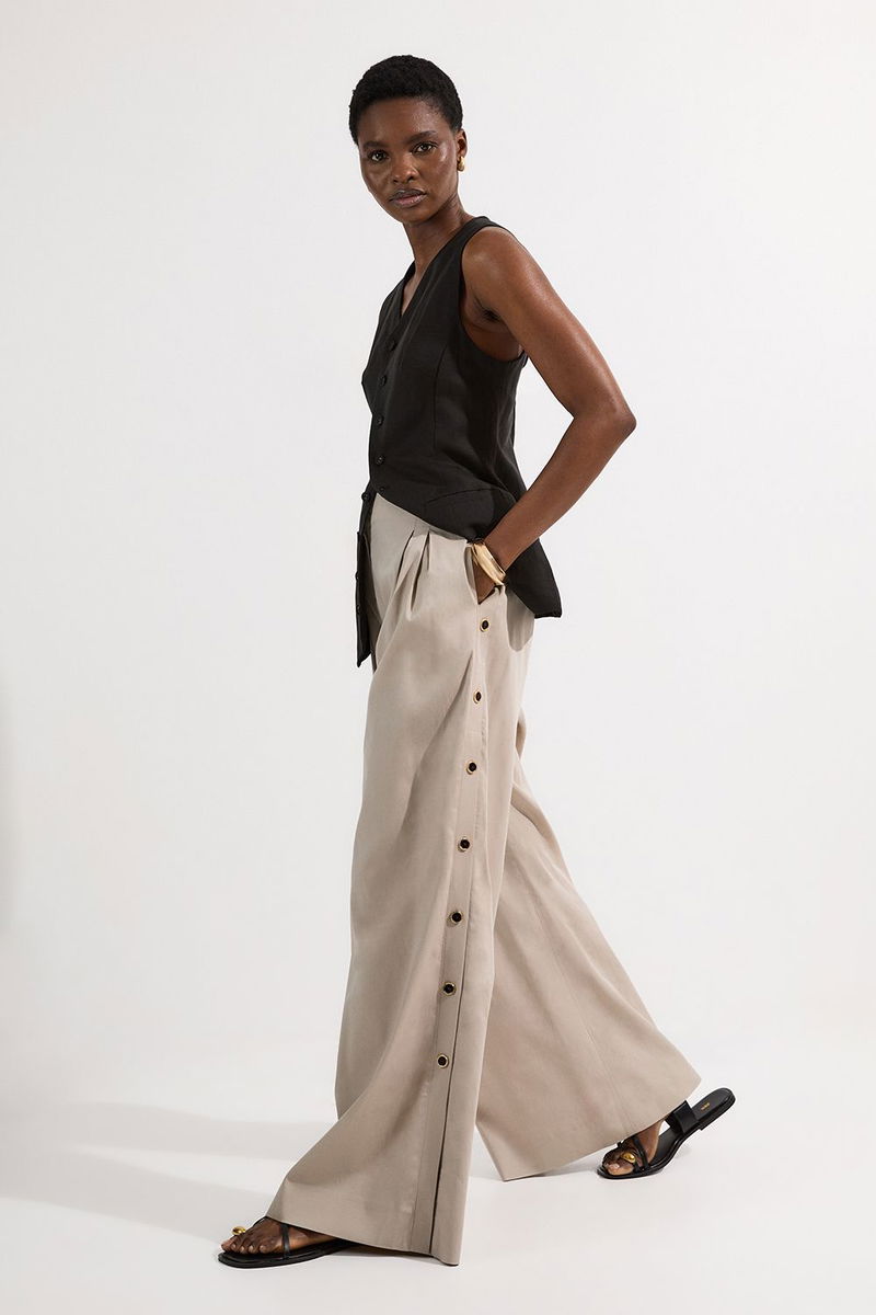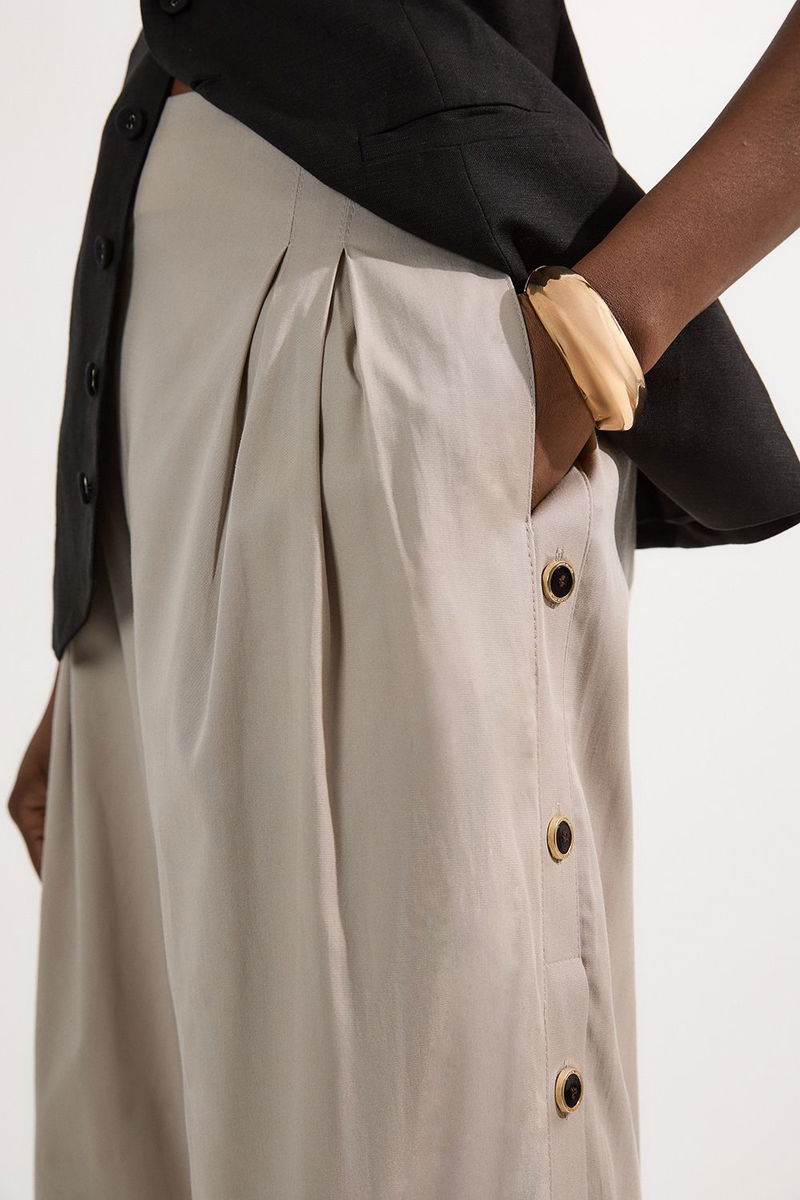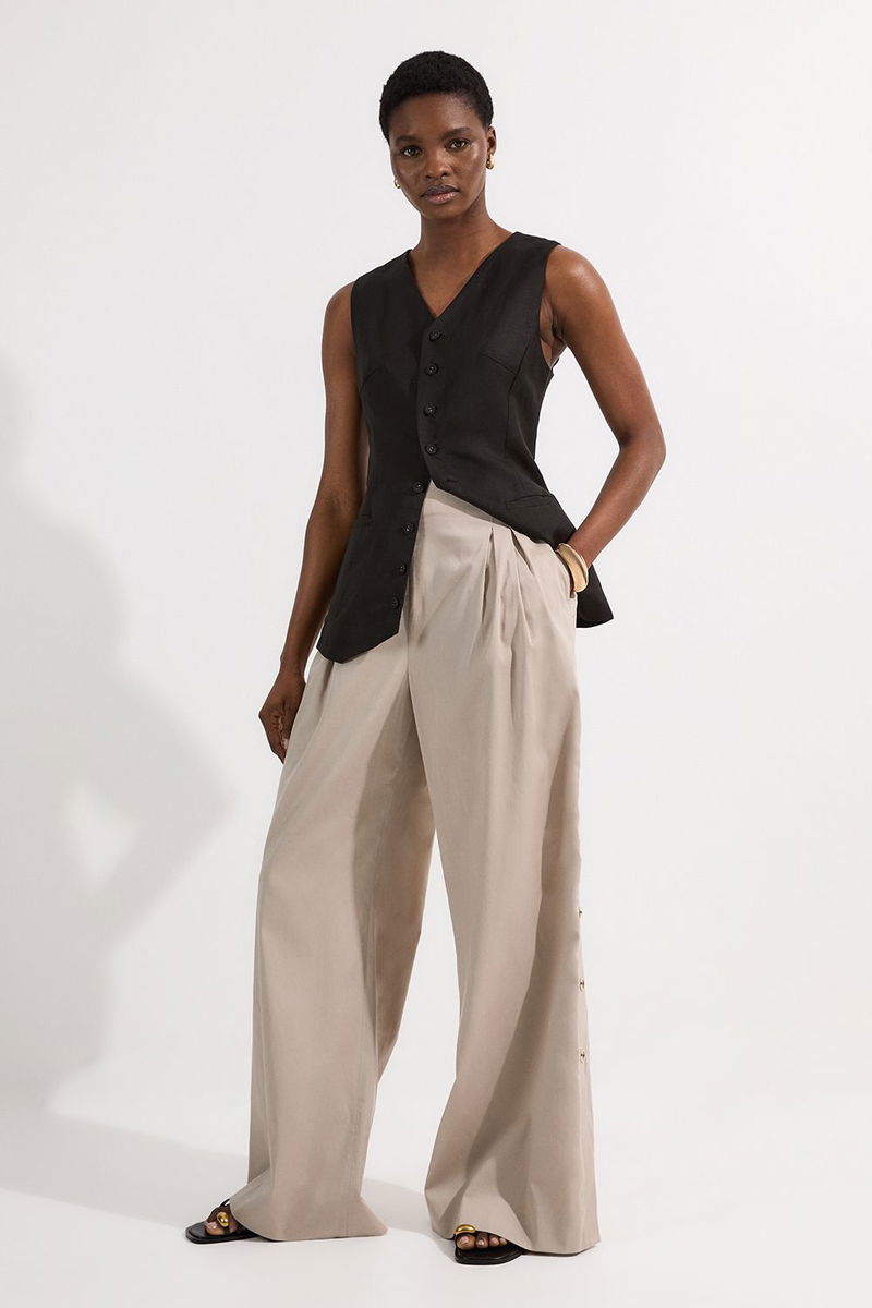 Tailored Polished Cotton Button Side Wide Leg Trousers