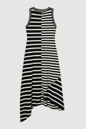 Tall Asymmetric Hem Cut About Stripe Sleeveless Knitted Midi Dress.