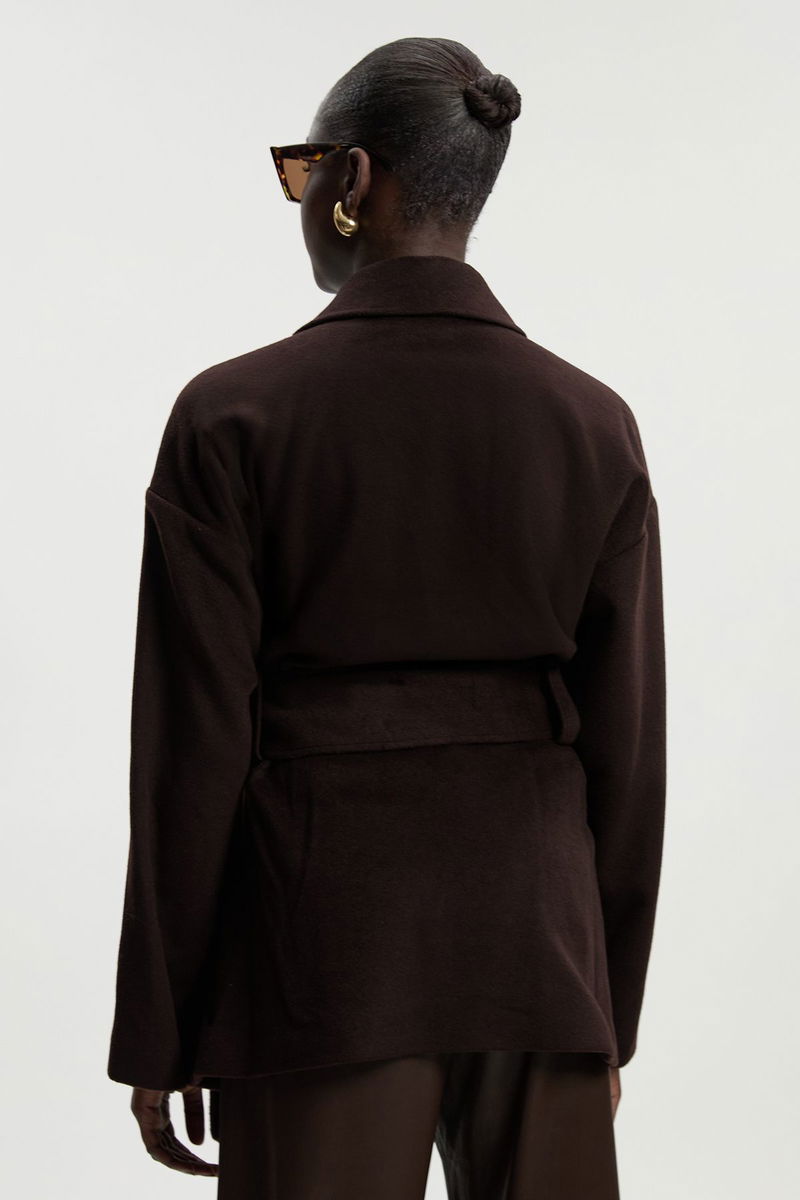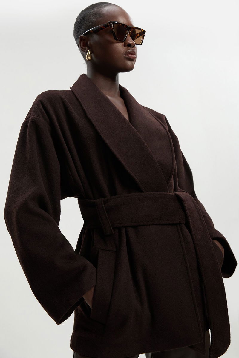 Tall Brushed Wool Belted Wrap Tailored Short Coat