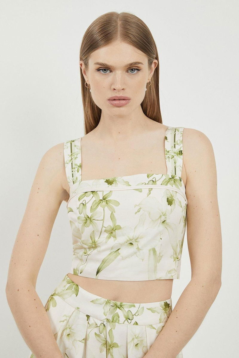 Tall Floral Botanic Printed Linen Woven Top.