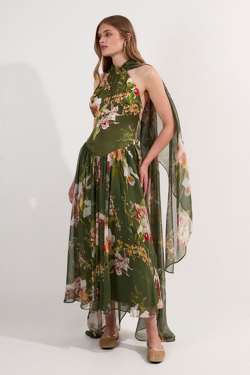 Tall Garden Floral Viscose Georgette Satin Mix Slip Maxi Dress