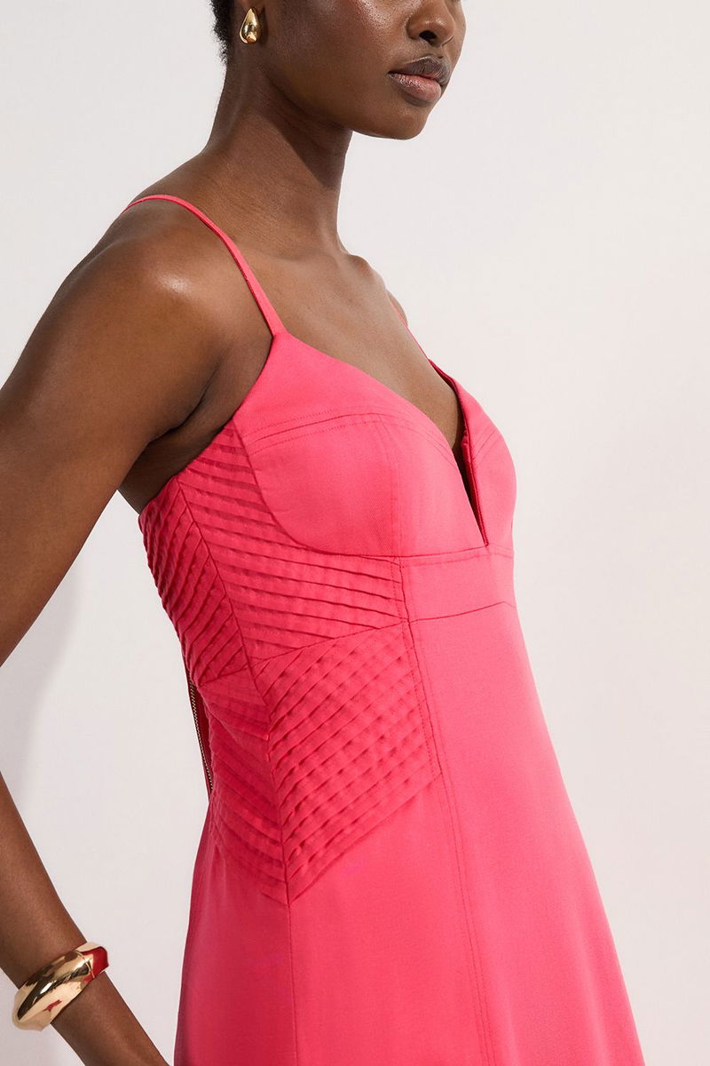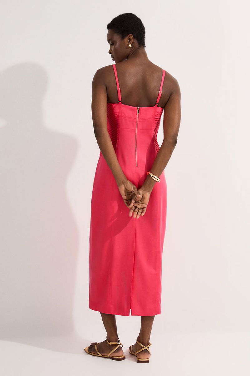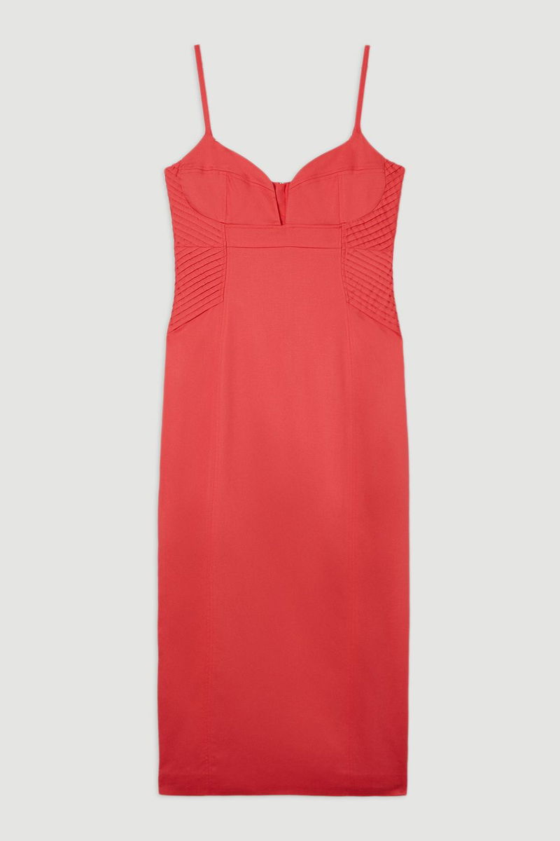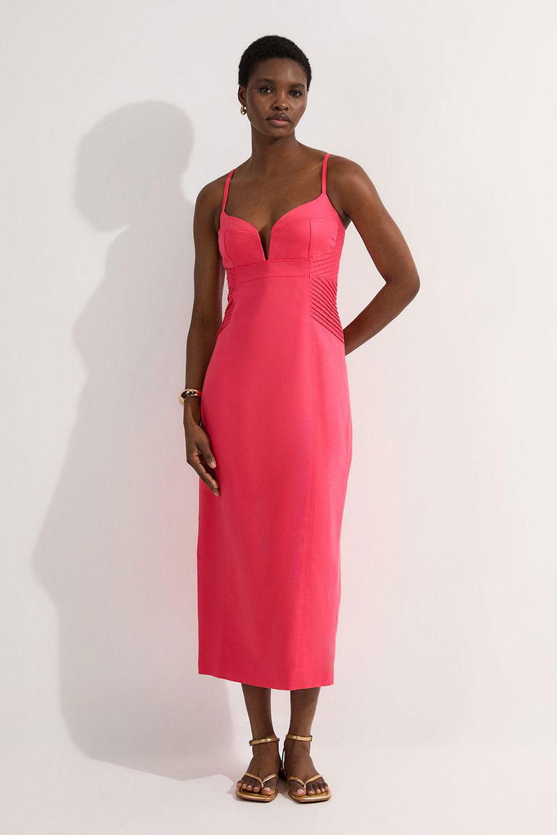 Tall Premium Linen Pintuck Detail Pencil Tailored Midi Dress