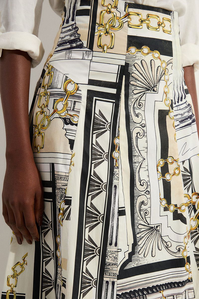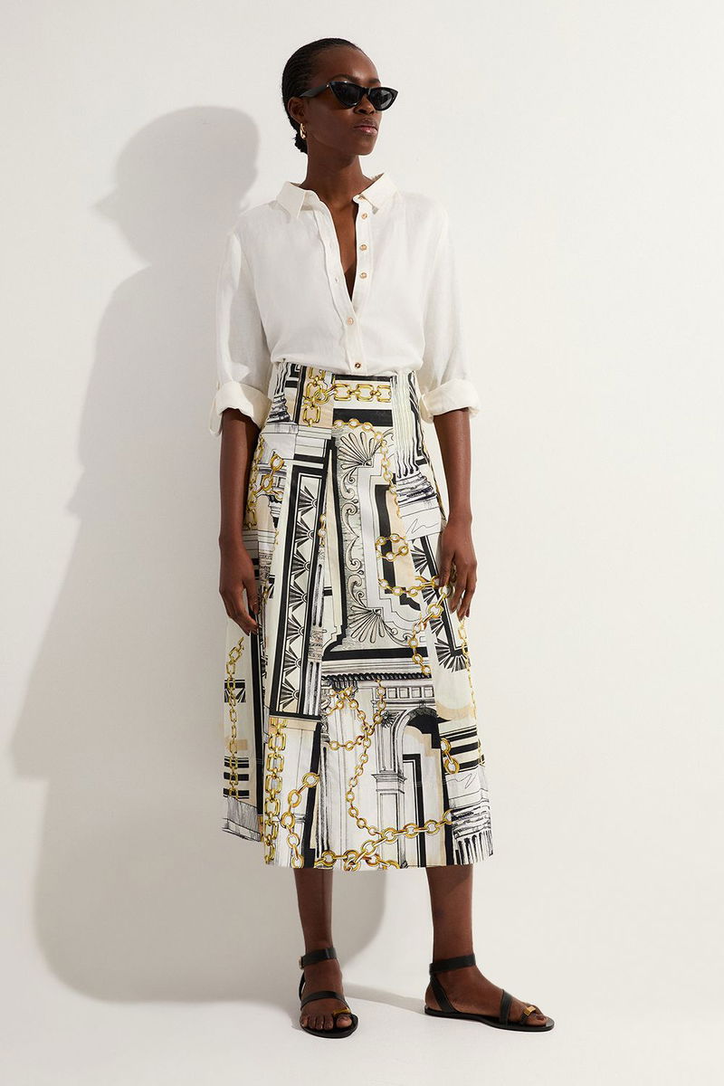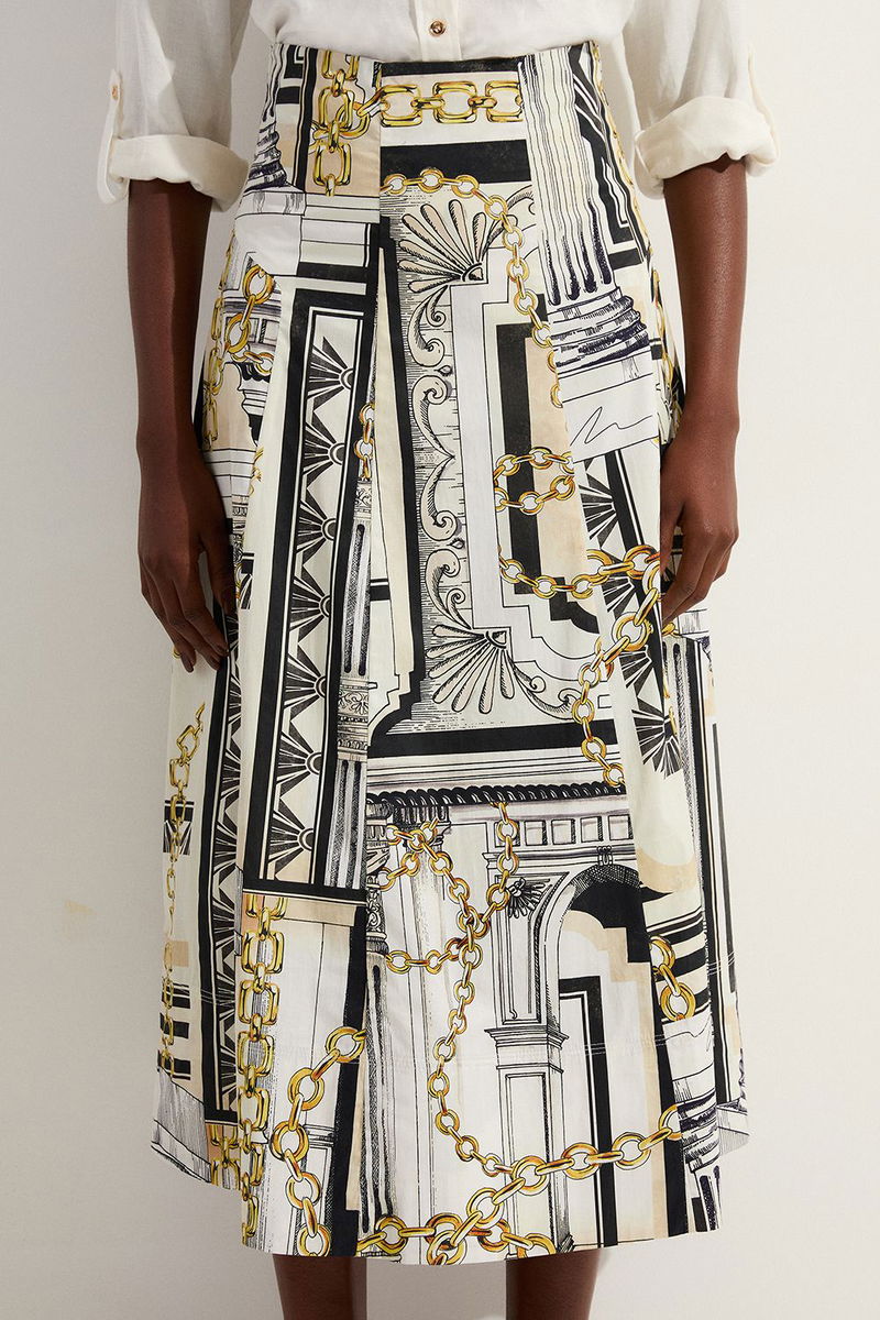Tall Roma Print Cotton Sateen Woven Drama Midi Skirt