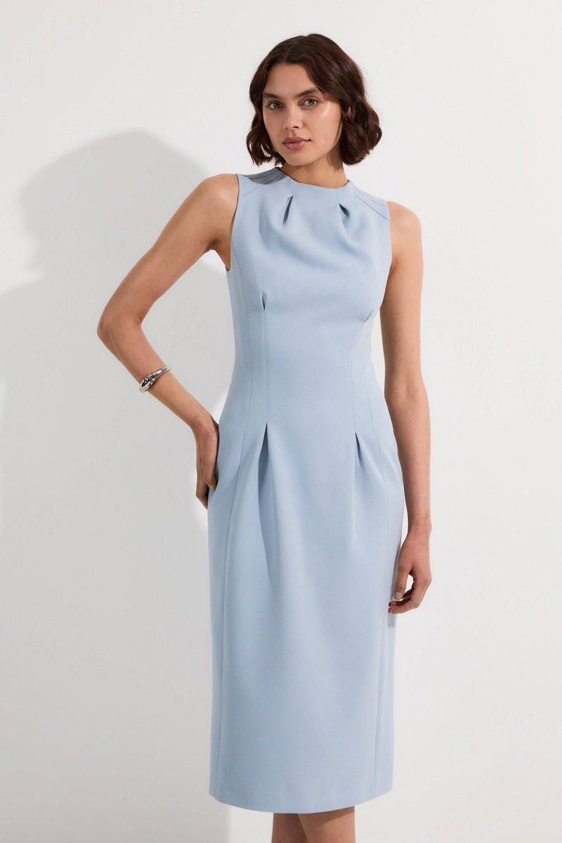 Tall Structured Crepe Sleeveless Tailored Pencil Midi Dress