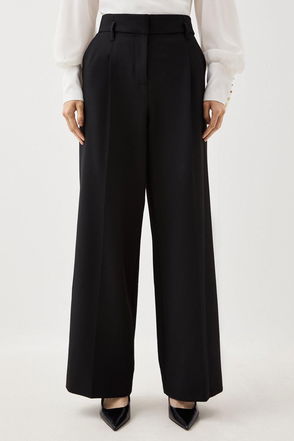 Experience elevated tailoring in a pair of tall wide leg trousers, featuring a flattering, relaxed fit and a comfortable high waistline. The sleek design makes them easy to style with anything, from a button up shirt and the matching blazer for a formal look, or with a T-shirt and trainers for a more laid back approach.