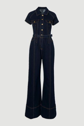 Introducing The Founder: Evolution, a third collection with our eponymous founder, Karen Millen. Welcoming in the spring season, these interchangeable staples will elevate the everyday with minimal effort. An ode to ‘70s style, this long sleeve jumpsuit is crafted from tailored denim. Featuring a classic collar, pocket detailing and a polished button down effect for utility-inspired elements and finished with belt loops for an adjustable fit. Pair with kitten heels for laidback elegance.