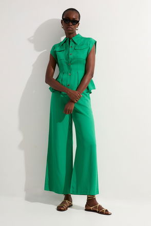 Viscose Linen Pleat And Pocket Detail Woven Straight Leg Trouser