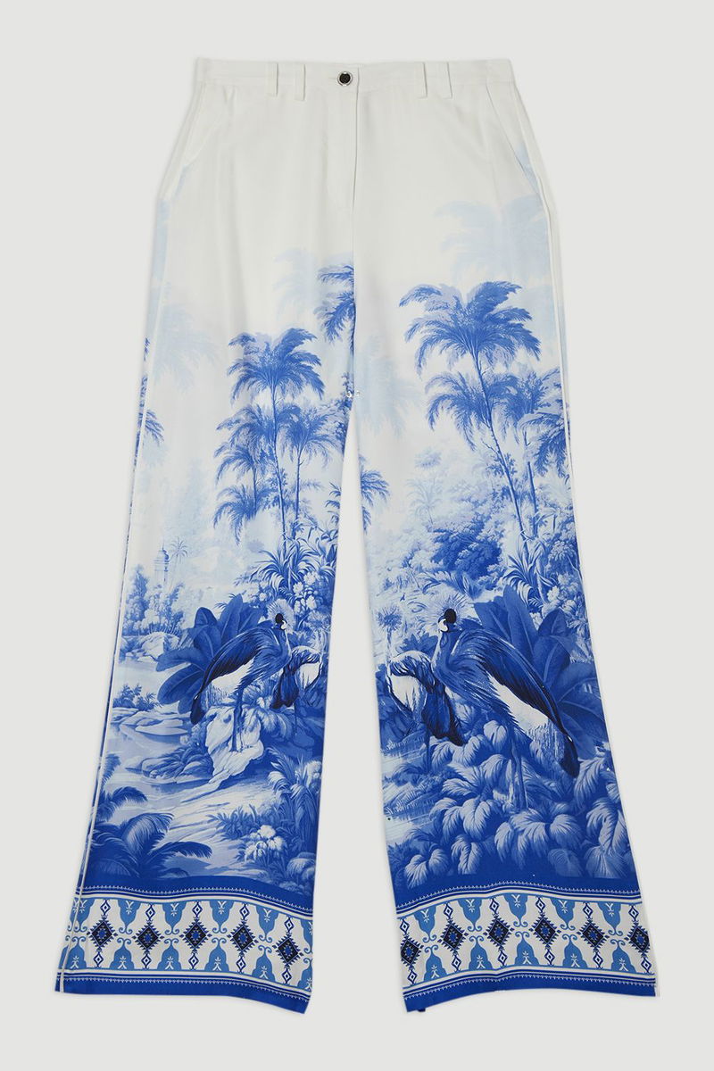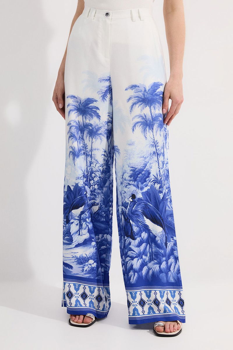 Viscose Linen Scenic Print With Top Stitch Woven Trouser