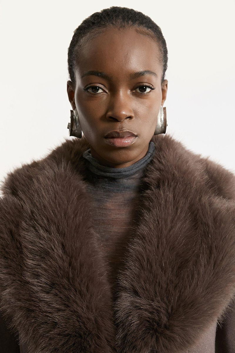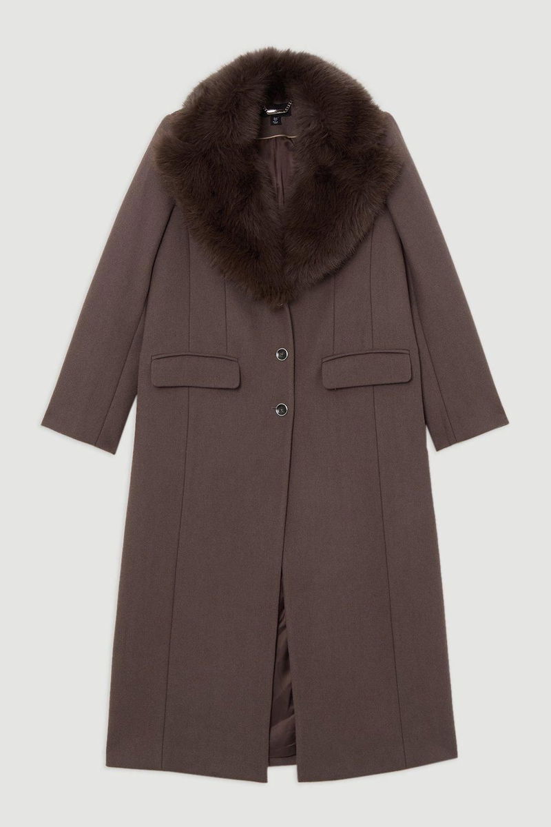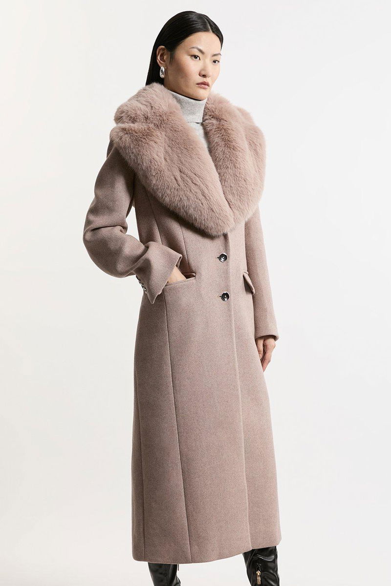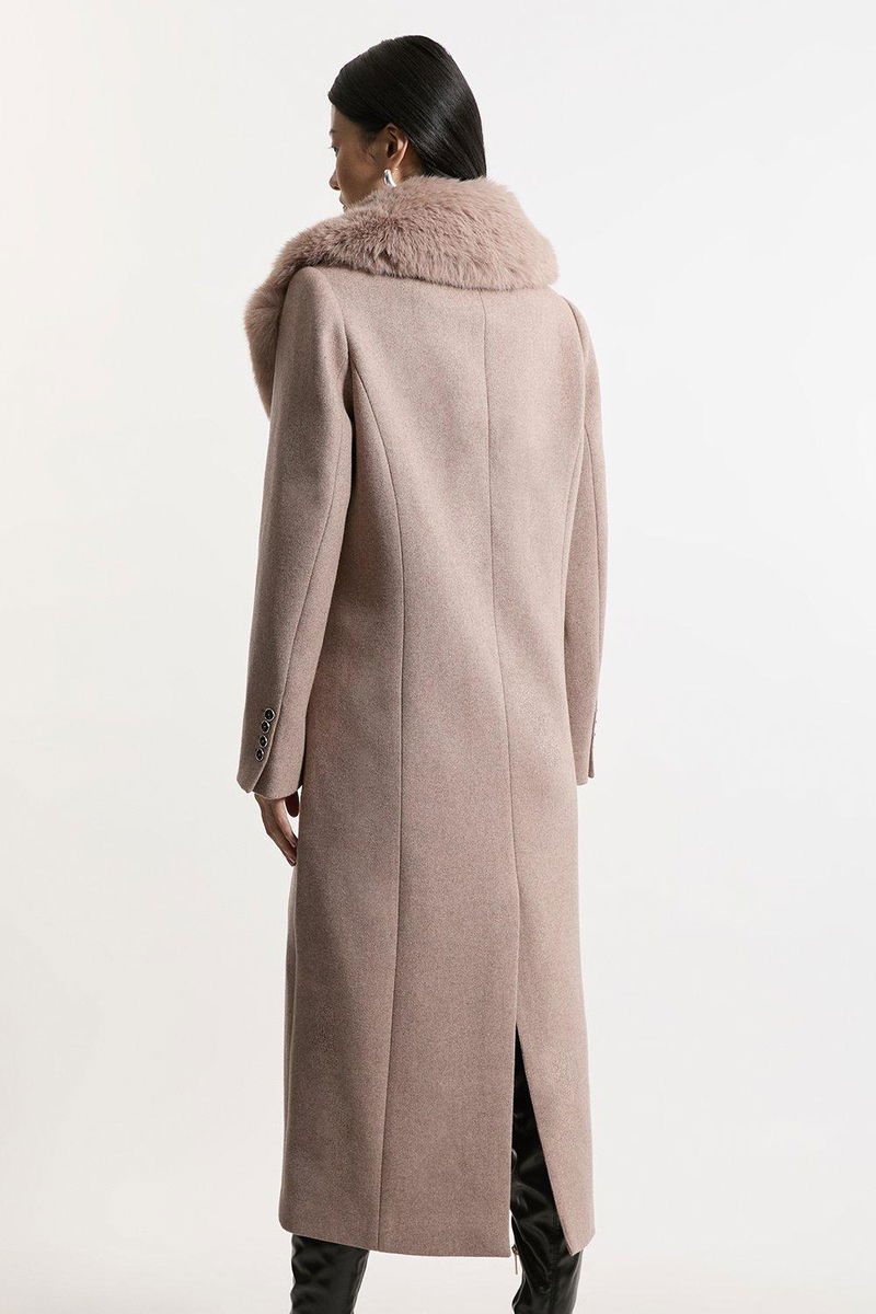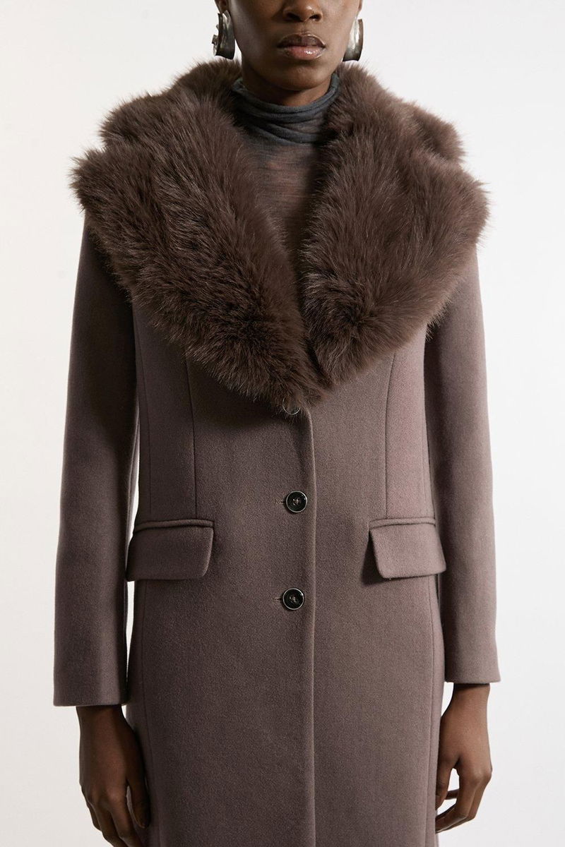 Wool Blend Fur Trim Collar Tailored Midi Coat