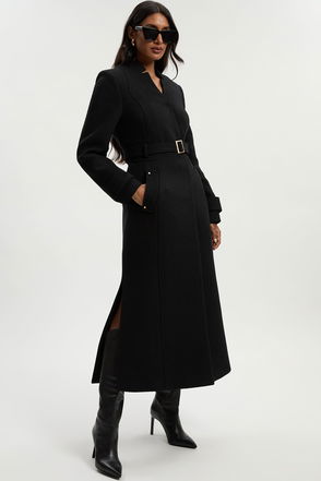 Wool Corset Detail Full Skirted Tailored Maxi Coat