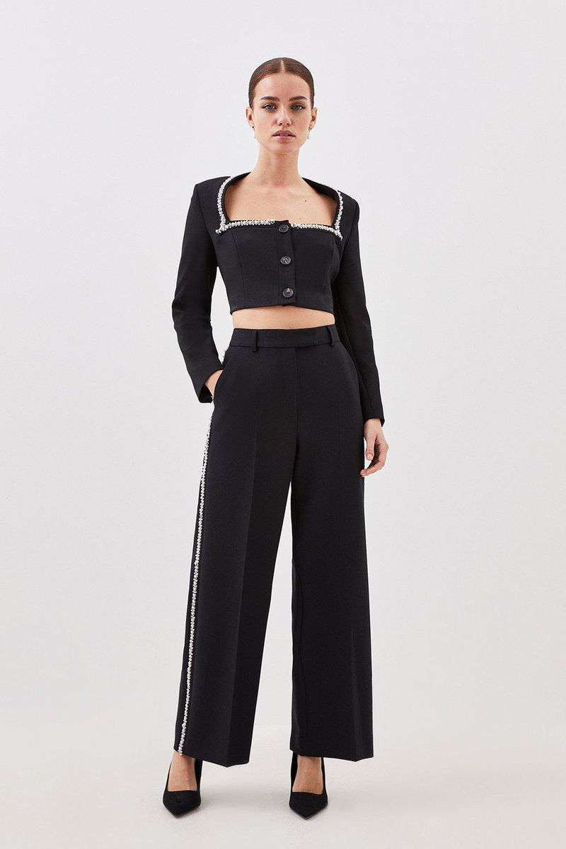 The new By Lydia: A Moment in Paris collection covers every dress code for the party season, featuring unique investment pieces that have a modern yet timeless feel.Adorned with a pearl-embellished trim, these trousers deliver sophisticated with a touch of opulence. Crafted with signature compact stretch fabric, these trousers are both stylish and durable. Style this pair with the co-ordinating top for an elegant party outfit.