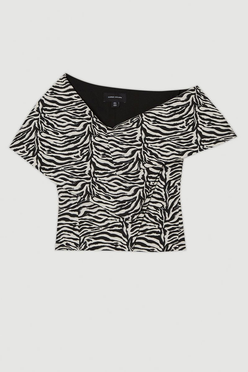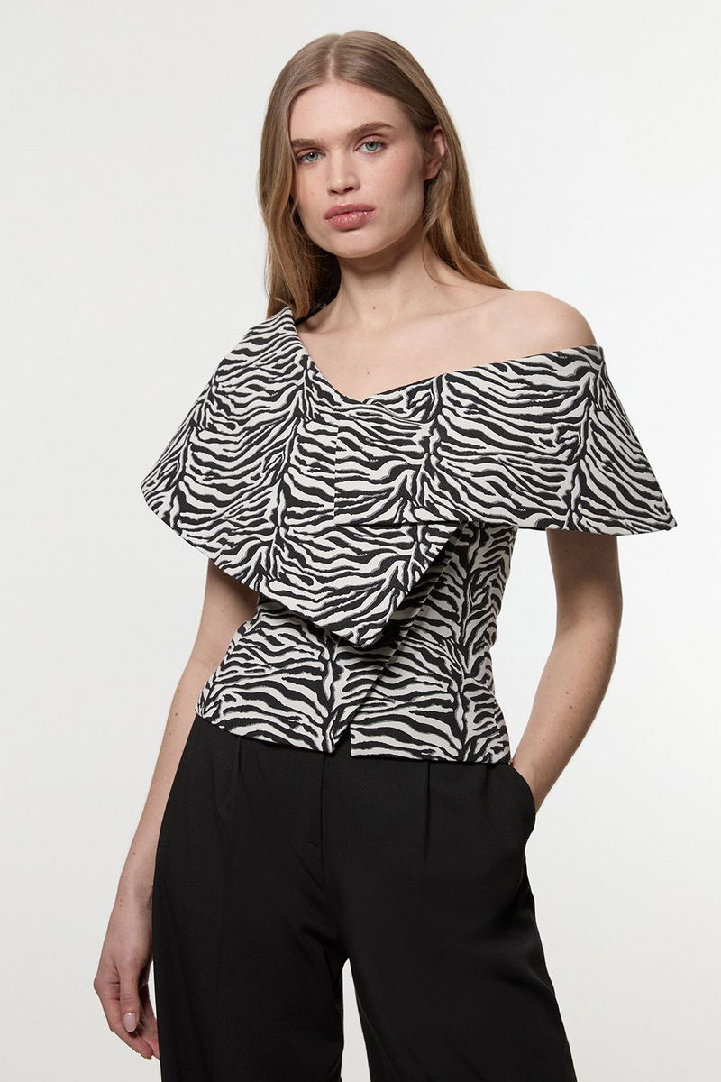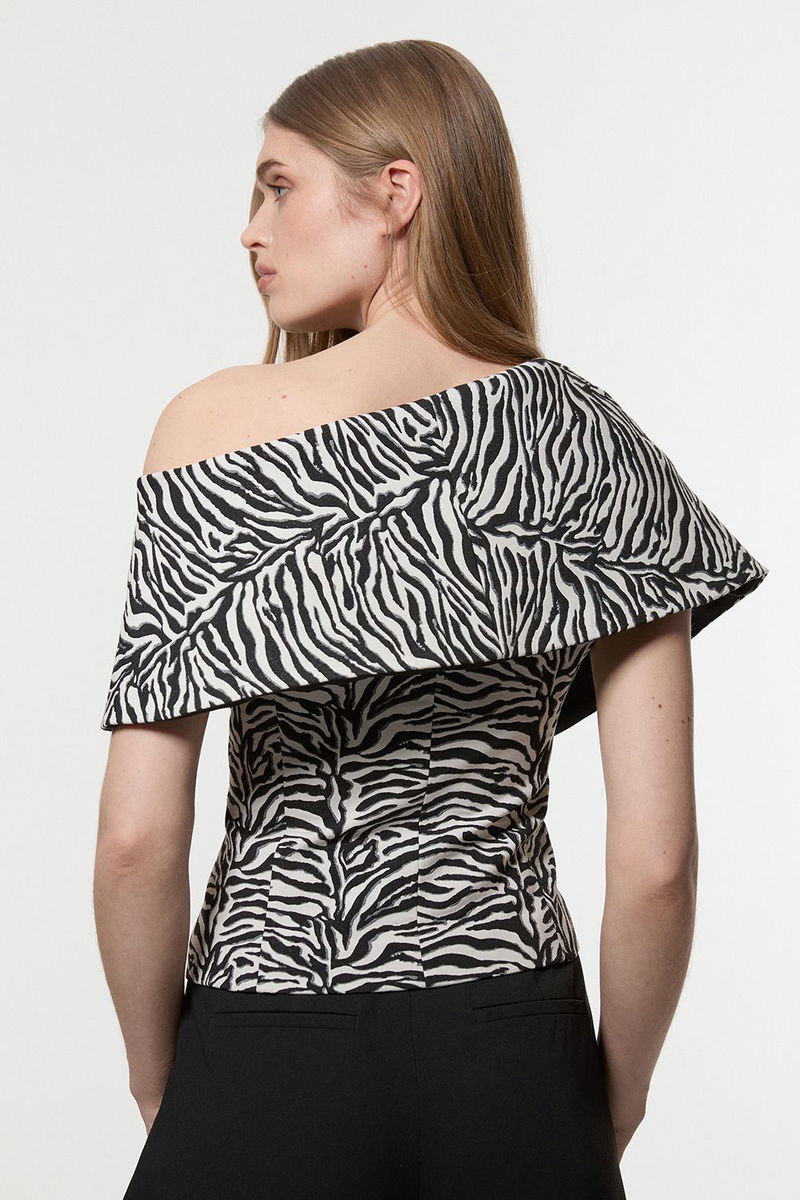 Zebra Jacquard Assymetric Neck Tailored Jacket