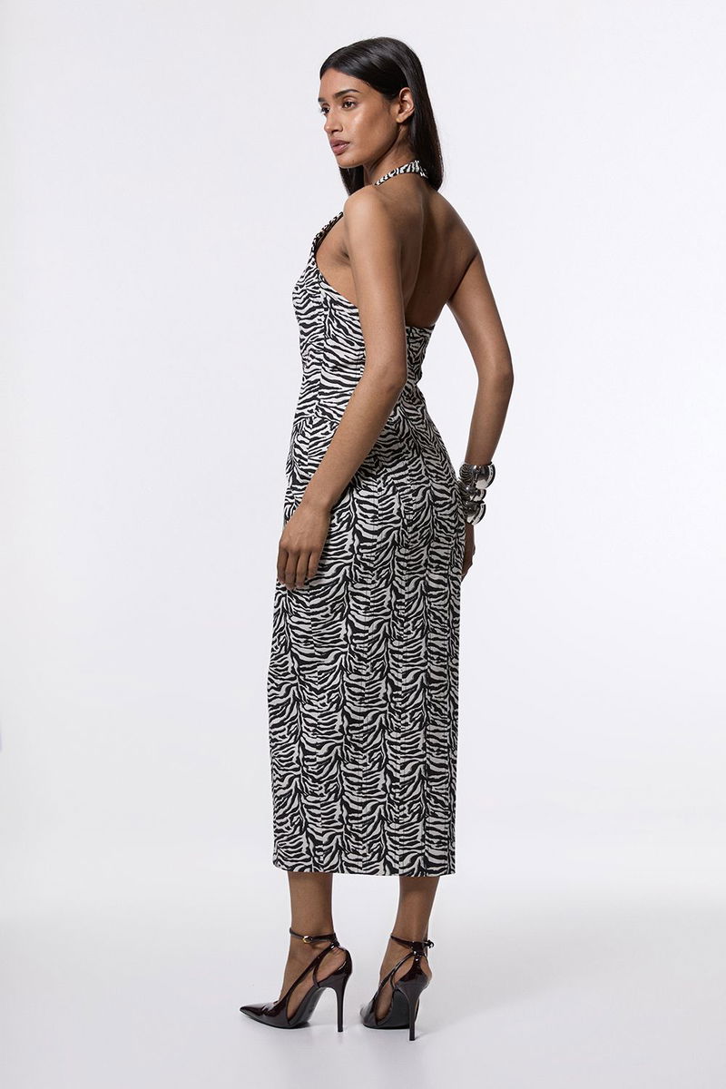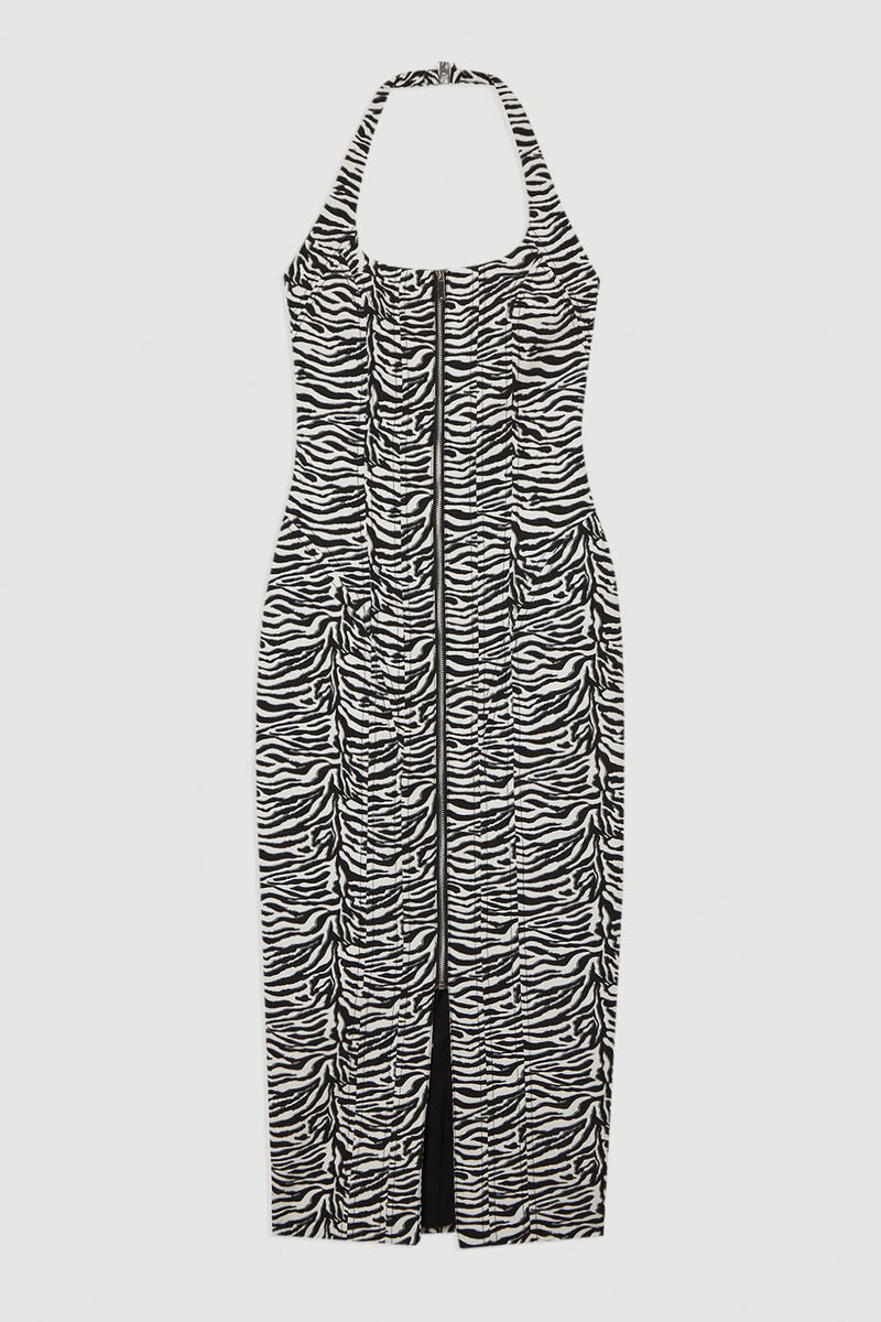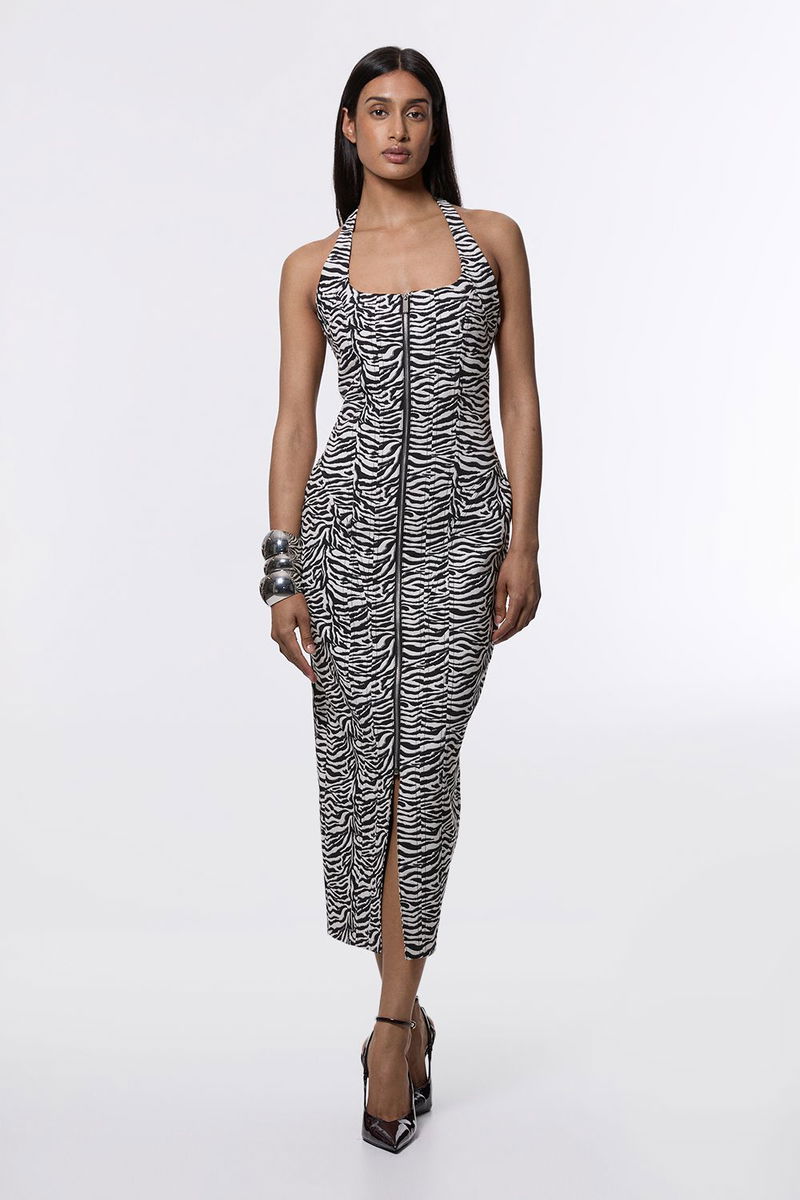 Zebra Jacquard Tailored Zip Through Pencil Midi Dress