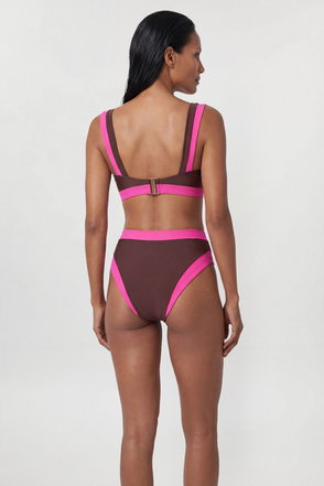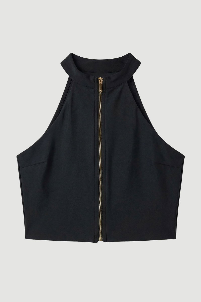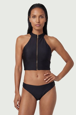 This sophisticated zip-up racer bikini top combines athletic inspiration with refined design sensibility. The striking high neckline and structured collar create a modern silhouette that flatters the décolletage, whilst the front zip detail allows for adjustable coverage. Pair with matching bottoms for a coordinated beach ensemble, or mix with contrasting prints for a personalised look. The versatile design transitions effortlessly from poolside lounging to beachfront strolls. For a complete resort look, layer under a sheer kaftan with wide-brimmed hat and oversized sunglasses. This piece works brilliantly for active water sports thanks to its secure fit, yet maintains the polished aesthetic Karen Millen is renowned for. Perfect for your summer holiday wardrobe, this bikini top offers both style and practicality for the discerning woman.
