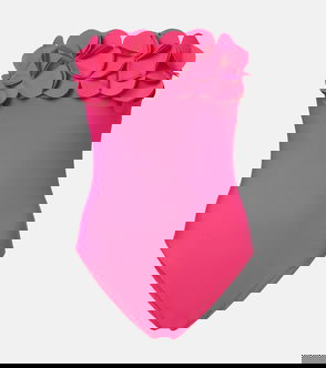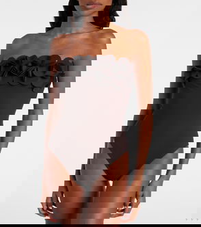 Tess Floral-Appliqué Strapless Swimsuit